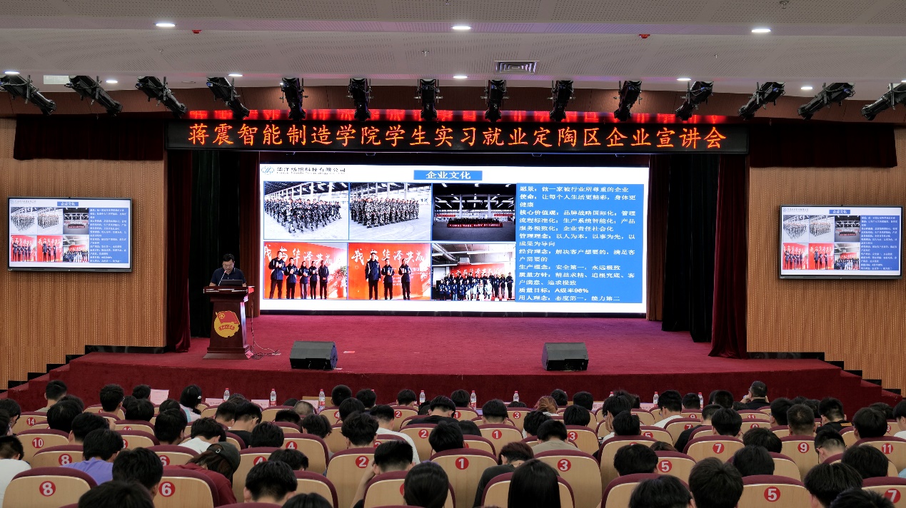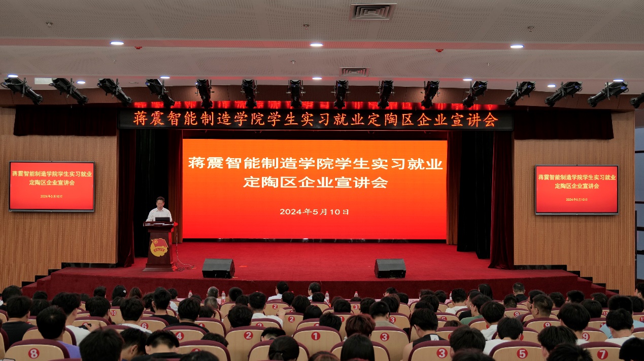 5月9日晚,蒋震智能制造学院隆重举办学生实习就业定陶区企业宣讲会。共青团定陶区委书记陈静带领定陶区企业宣讲团来校宣讲。永利官网校企合作处处长陈建华、团委书记庞庆强、招生就业办公室负责人李鸿浩应邀出席。蒋震智能制造学院师生代表300余人参加。宣讲会由蒋震智能制造学院党总支书记张善雨主持。