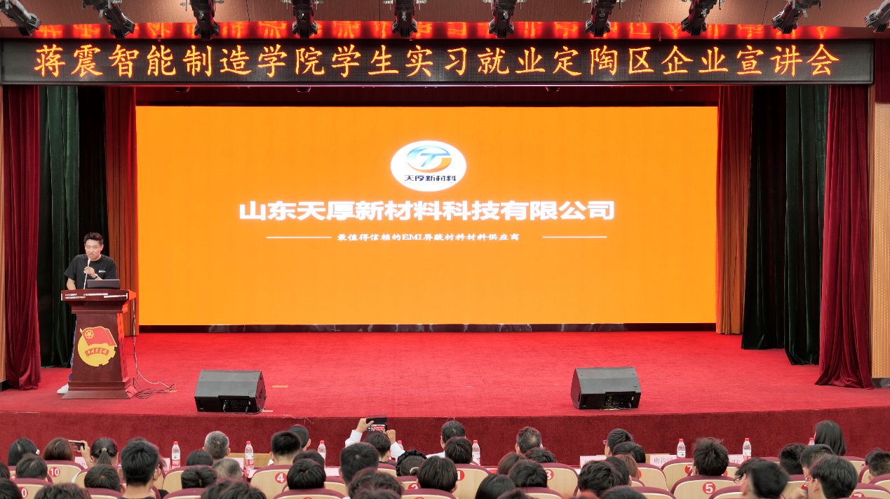 在宣讲中,山东天厚新材料科技有限公司、山东华泽纺织科技有限公司、菏泽三垒塑业股份有限公司、菏泽振华机械制造有限公司四家定陶区优质龙头企业分别从公司的基本情况、薪资待遇、岗位需求、食宿条件和员工福利保障等方面向同学们进行宣讲,并在宣讲结束后集中提问答疑。