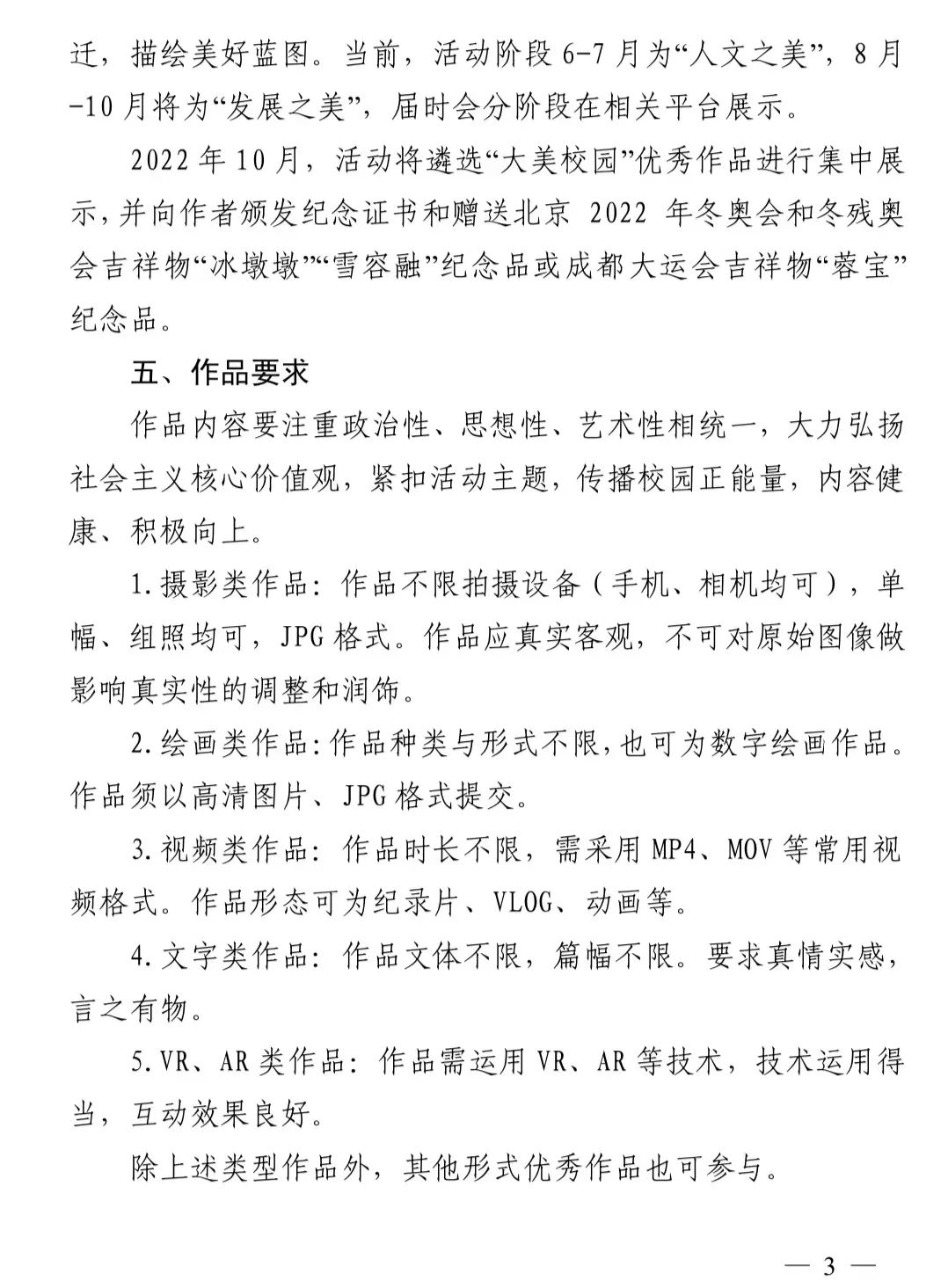 关于组织参加教育部“大美校园”征集展示活动的通知