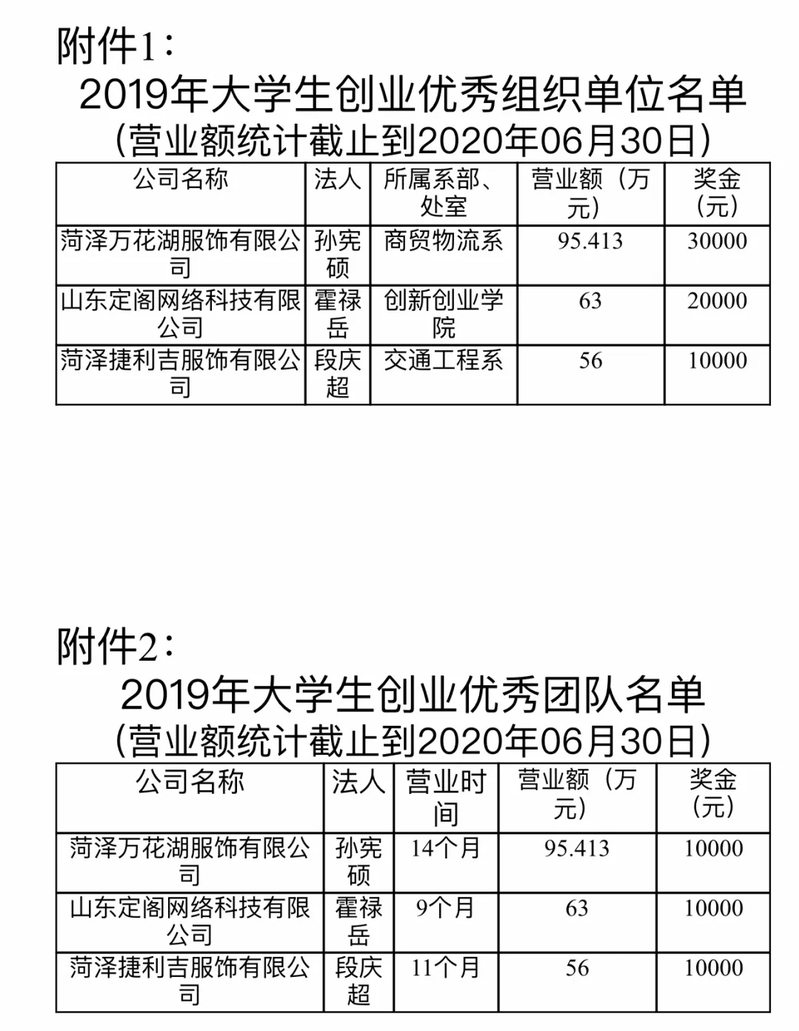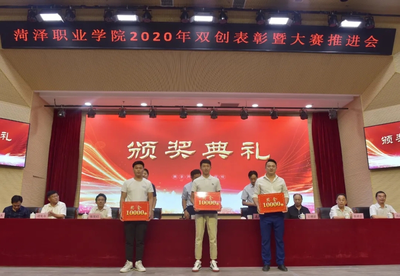 我院“双创”工作起点高,定位准,本着“牢基础、高标准、快发展、创特色”的工作理念,实现了“以创促学、以创促改、以创促赛”的工作目标,成绩斐然。先后承办了2019年菏泽市黄炎培职业教育创新创业大赛总决赛和2020年菏泽市首届退役军人创业创新大赛;荣获省级金奖1项、三等奖3项,实现了历史性突破。指导学生团队成功注册小微企业27家,全部入驻大学生创新创业园,2019年度营业额达到236.2万元。我院也被获颁山东省创新创业学院、山东省创客之家、菏泽市黄炎培创业先行基地。