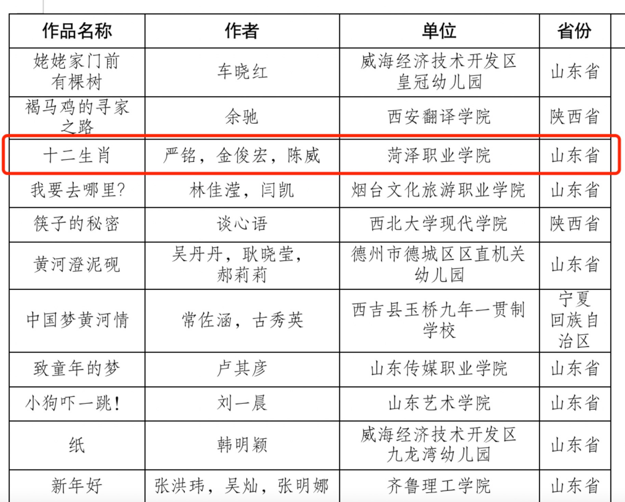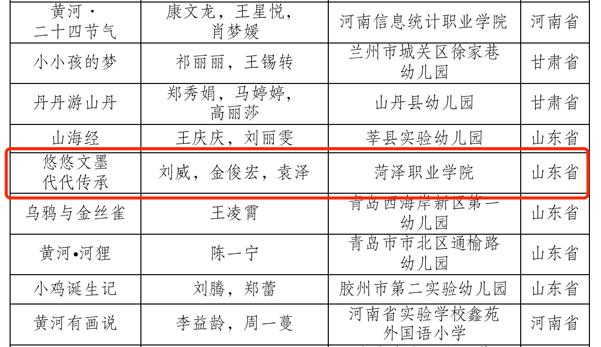 近日,由山东省教育厅联合沿黄九省(区)教育厅,共同举办沿黄九省(区)原创儿童图画书素材创意大赛评选结果公示。经专家多轮评选,永利官网教师取得多项优异成绩。