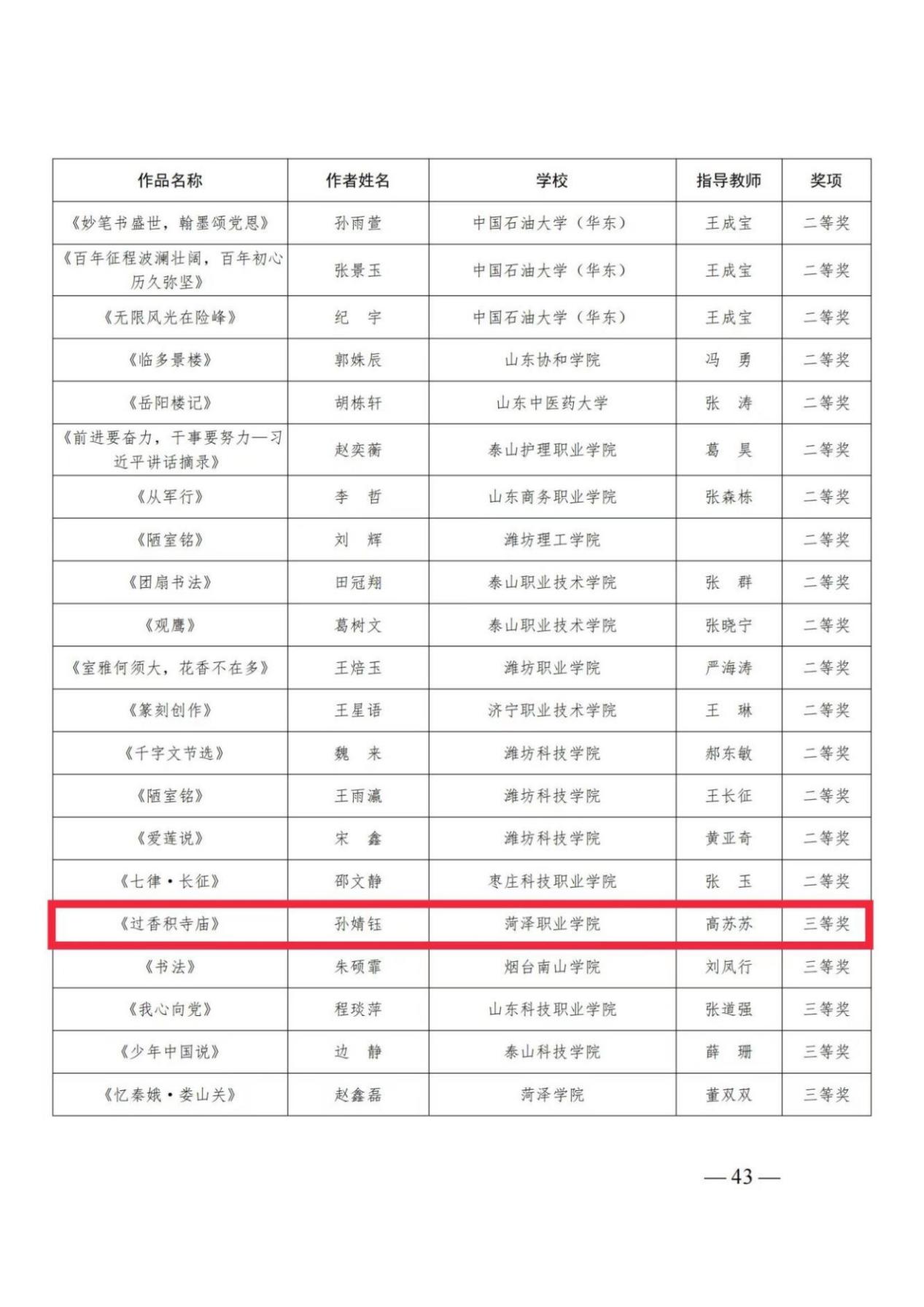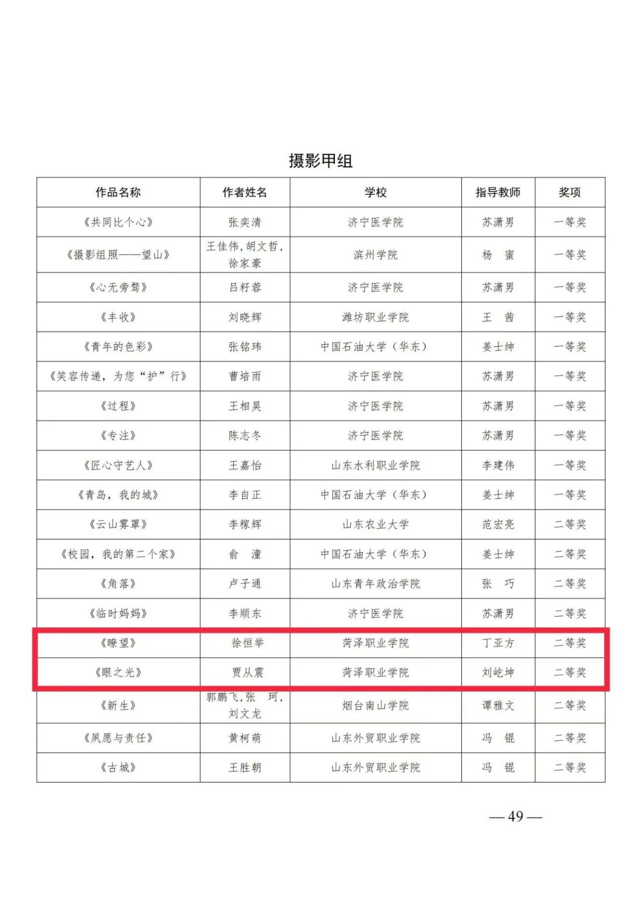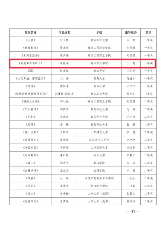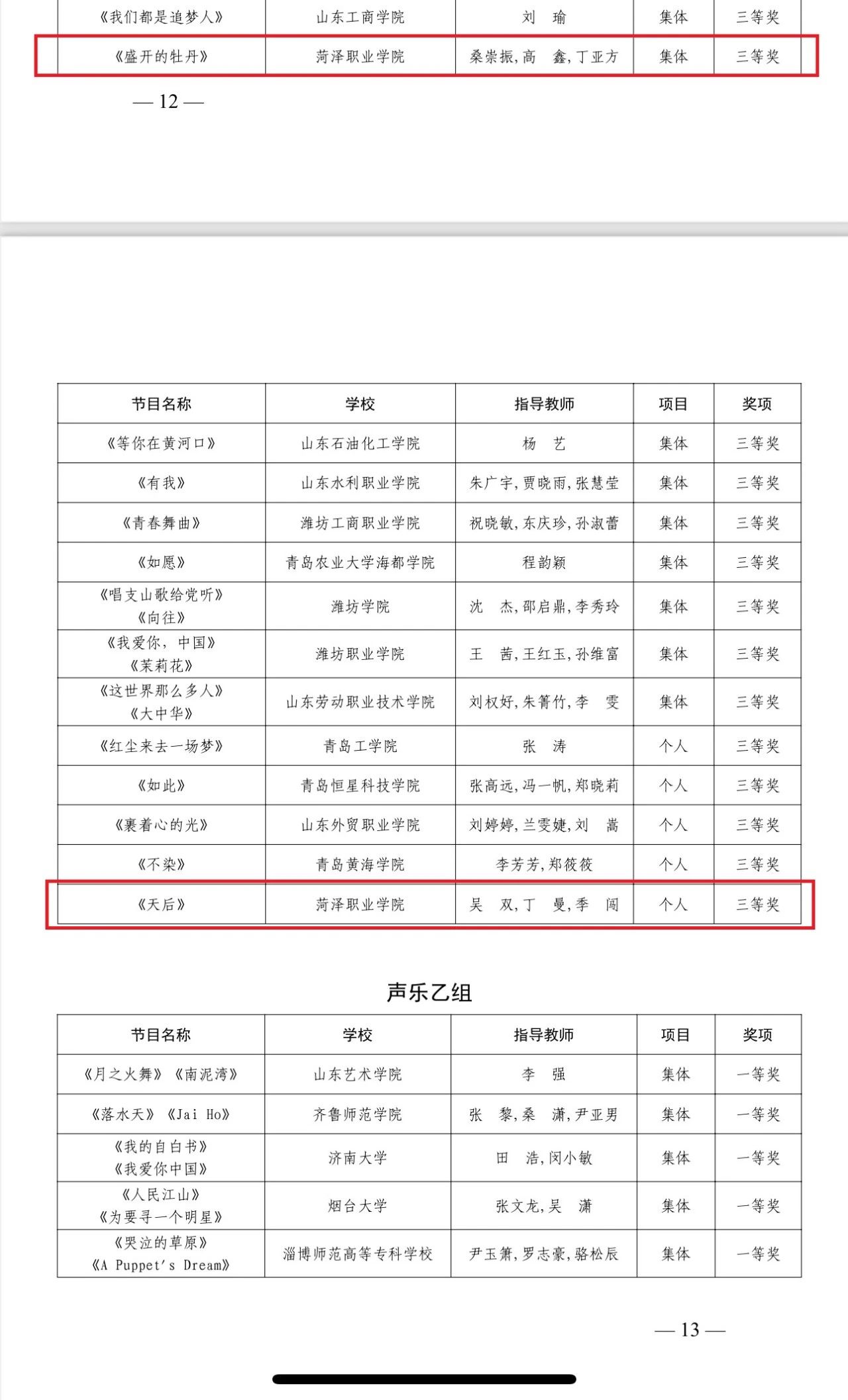 在由山东省教育厅举办的山东省第七届大学生艺术展演活动中,永利官网获得艺术表演奖声乐甲组三等奖2项;绘画乙组一等奖1项;书法和篆刻甲组三等奖1项;摄影甲组二等奖2项。