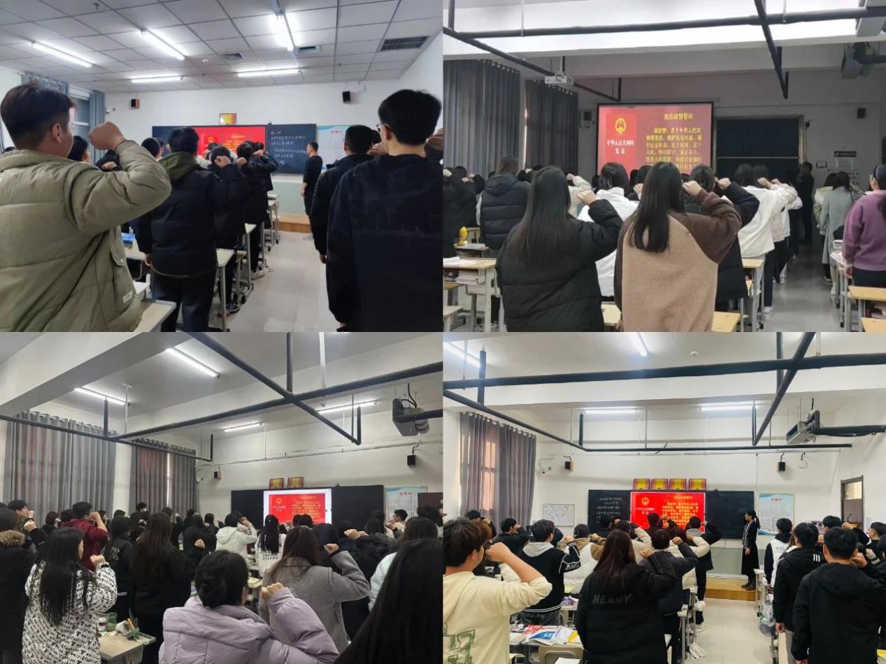 12月4日,基础教学部组织全体思政课教师带领学生举行宪法宣誓仪式。全体学生肃穆而立,以铿锵有力的声调共同宣誓,字字句句间感悟宪法的高度、温度、深度和宽度。鼓励学生自觉弘扬宪法精神,维护宪法权威,成为宪法的忠实崇尚者、自觉遵守者、坚定捍卫者。