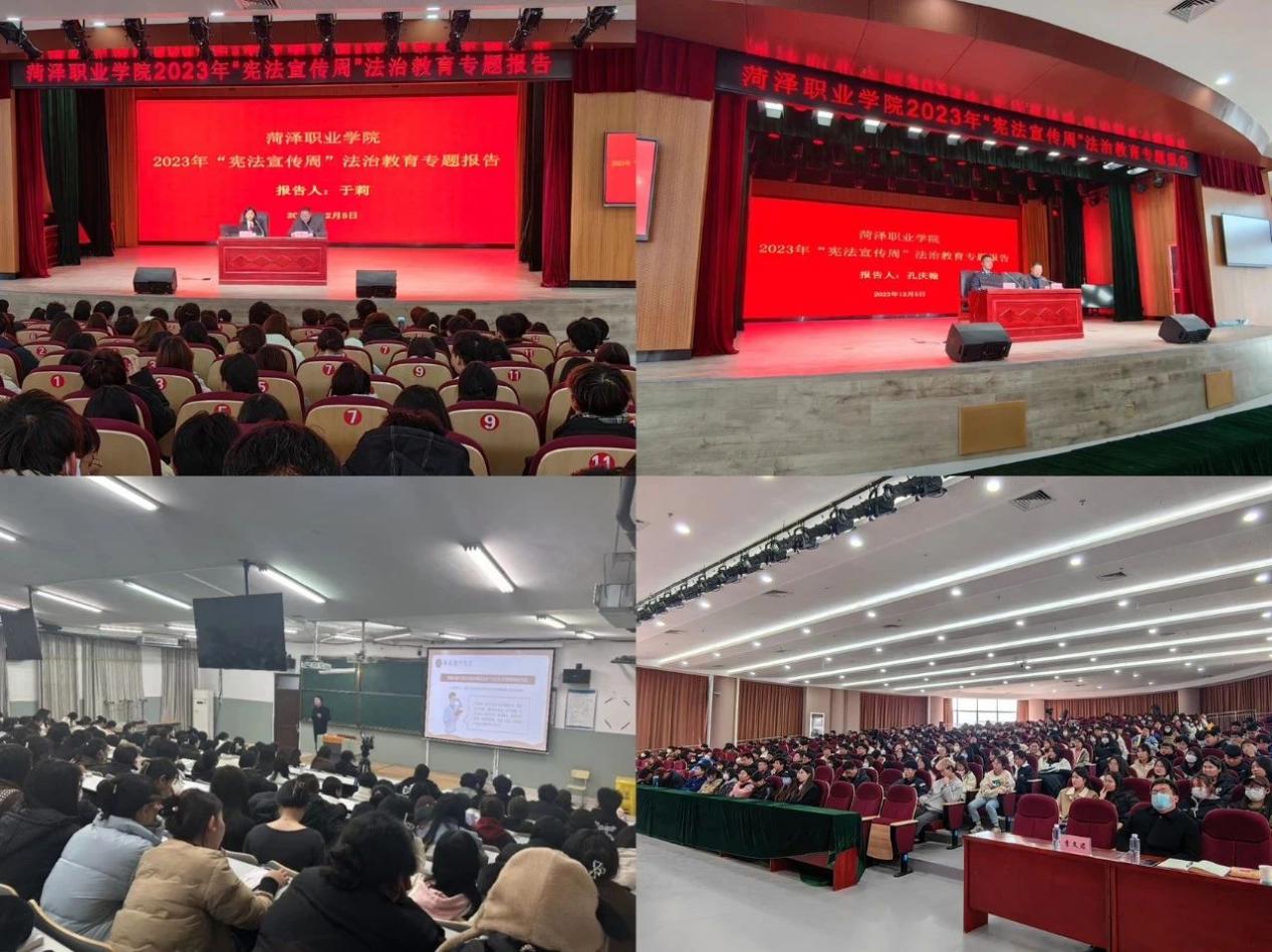 12月4日至5日,学校积极组织3场法治专题讲座,分别邀请菏泽市中级人民法院少年审判庭庭长于莉、菏泽监狱干警讲师团讲师孔庆翰、基础教学部法律专业教师韩文正。结合学生年龄特点和认知能力,用通俗易懂的语言,生动鲜活的案例对宪法的相关知识、青年大学生违法犯罪的现状及心理,深入浅出地阐释了与同学们生活息息相关的法律知识,赢得了同学们阵阵掌声。通过法治教育专题的学习,同学们表示进一步加深了对法治尤其是宪法的深刻认识,增强了自己的宪法意识和法治素养,要做一个尊法、学法、知法、守法的大学生。