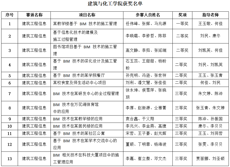 建化学院积极组织学生参与本赛事,营造了良好的勇于创新、敢于竞争的校园学习环境和氛围。学生在备赛过程中,专业技能和综合素质也得到了极大的提升。此次成绩的取得,充分体现了建化学院师生在BIM技术应用方面精湛的技能水平。我院将基于各类技能大赛继续优化人培方案和教学模式,提高办学质量,为社会培养更多高素质技术技能人才。