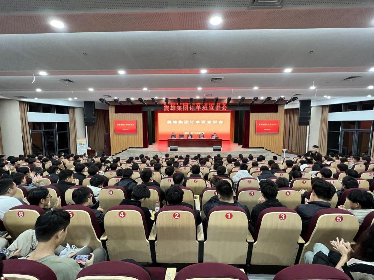 陈小承详细介绍了震雄集团的发展历程,从“订单班是什么”“同学们如何加入订单班”“订单班能给你带来什么”等方面推介震雄集团订单班,并热情地与同学们交流互动。