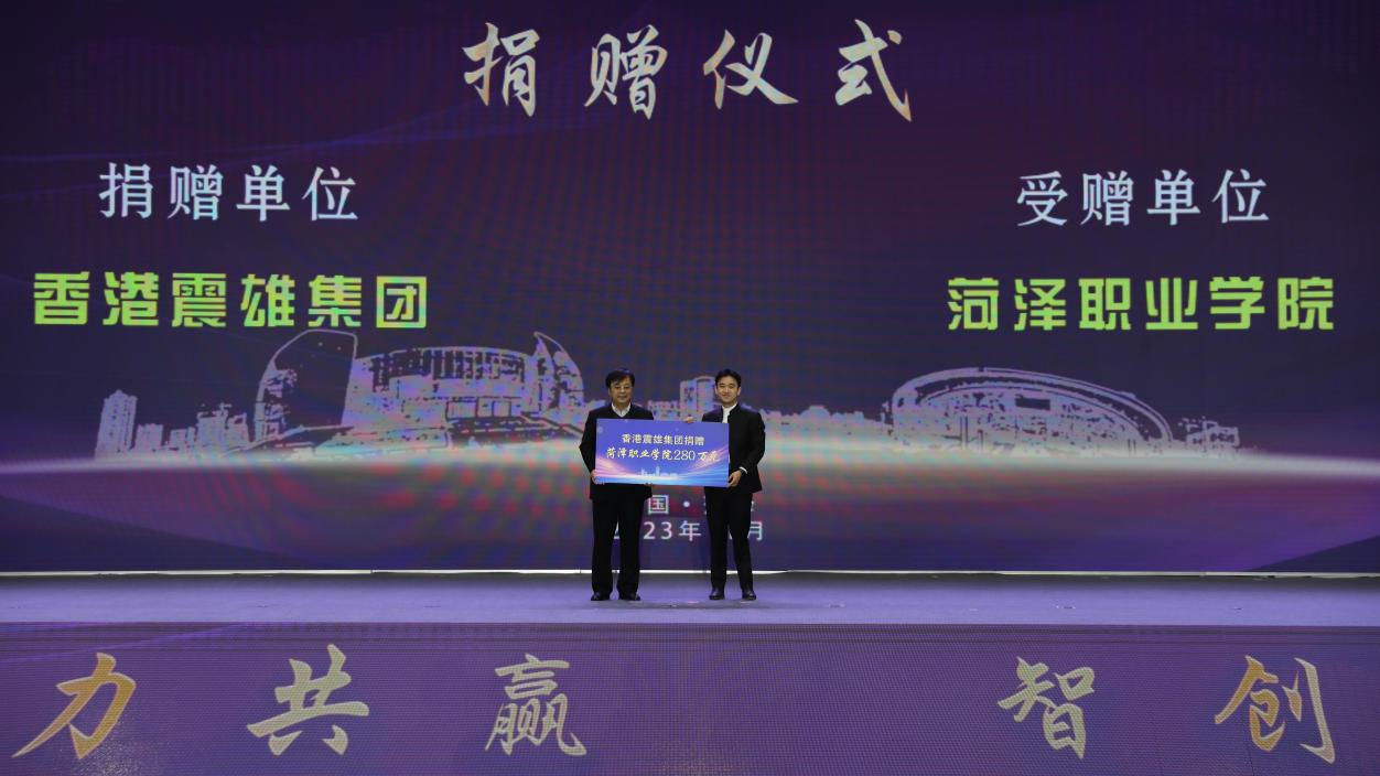 震雄集团秉承蒋震先生爱国爱家、实干兴学初心,致力于慈善事业和教育发展,对家乡的教育和人才培养尤为关心,多次来菏调研考察,洽谈投资办学项目,回馈家乡父老。先后与永利官网组建了蒋震智能制造学院,共建了“震雄集团订单班”,共同培养一流的制造业高技术技能人才。在全市设立了“蒋震博士奖学金”,激励更多的优秀人才脱颖而出,帮助学子们在学业之路上更好地耕耘、不断成长为新时代高素质创新人才。此次捐赠是双方合作的进一步深化,也是震雄集团致力于家乡教育事业发展的又一力证。