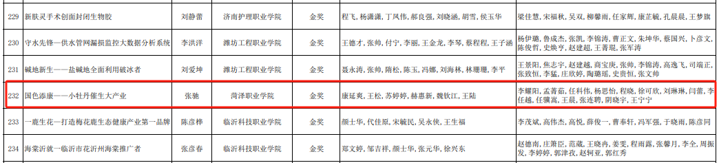 近日,“建行杯”第九届山东省“互联网+”大学生创新创业大赛获奖结果公布,永利官网康延爽、王松、苏婷婷、赫惠新、魏钦江、王陆老师指导的“国色添康——小牡丹催生大产业”项目获得职教赛道金奖。