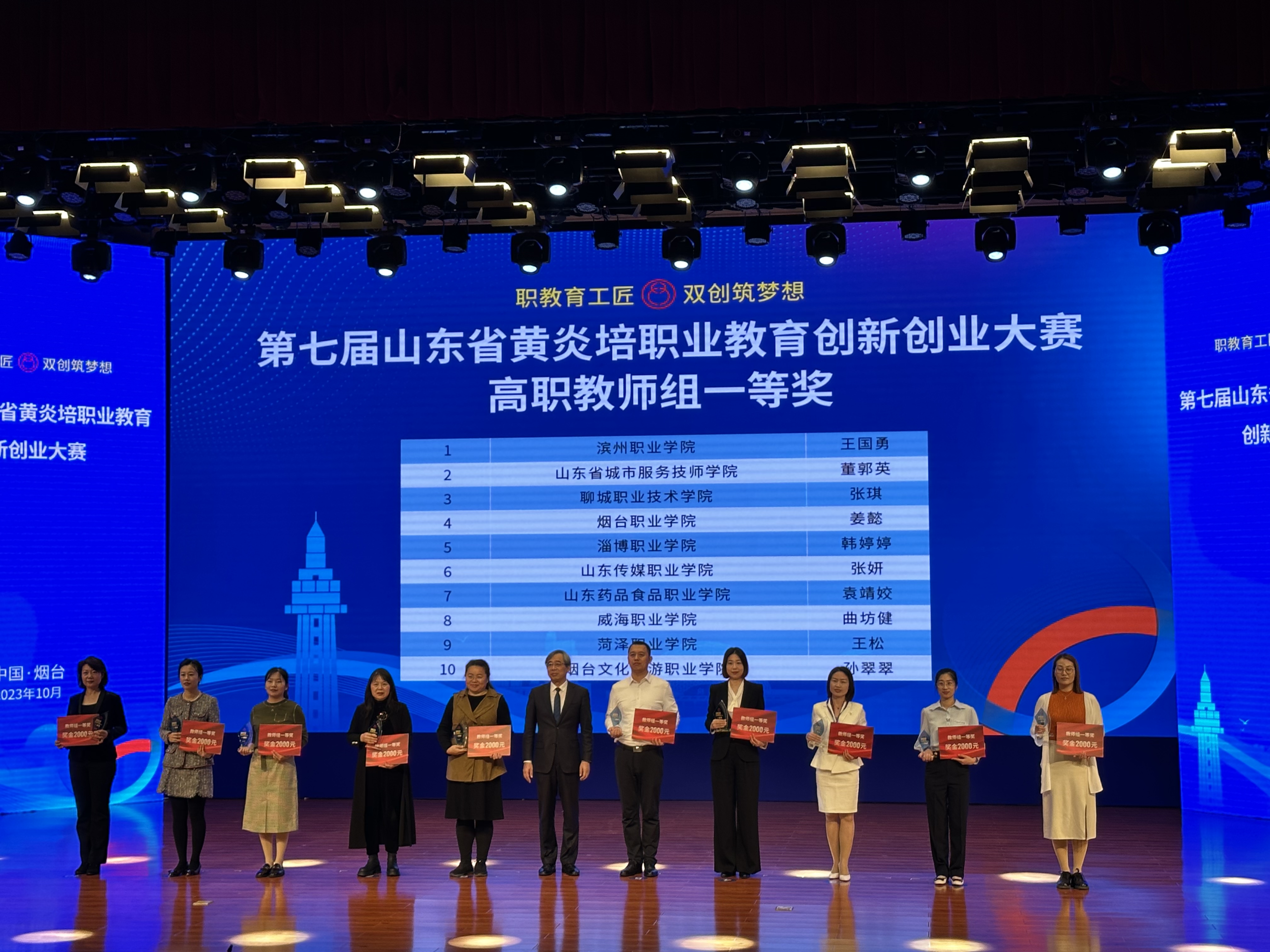 10月29日,由省中华职教社、省总工会、省教育厅、省人力资源和社会保障厅主办的第七届山东省黄炎培职业教育创新创业大赛决赛在烟台职业学院举办。本次大赛以“职教育工匠 双创筑梦想”为主题,包括学生创新创业规划大赛和教师创新创业指导大赛。