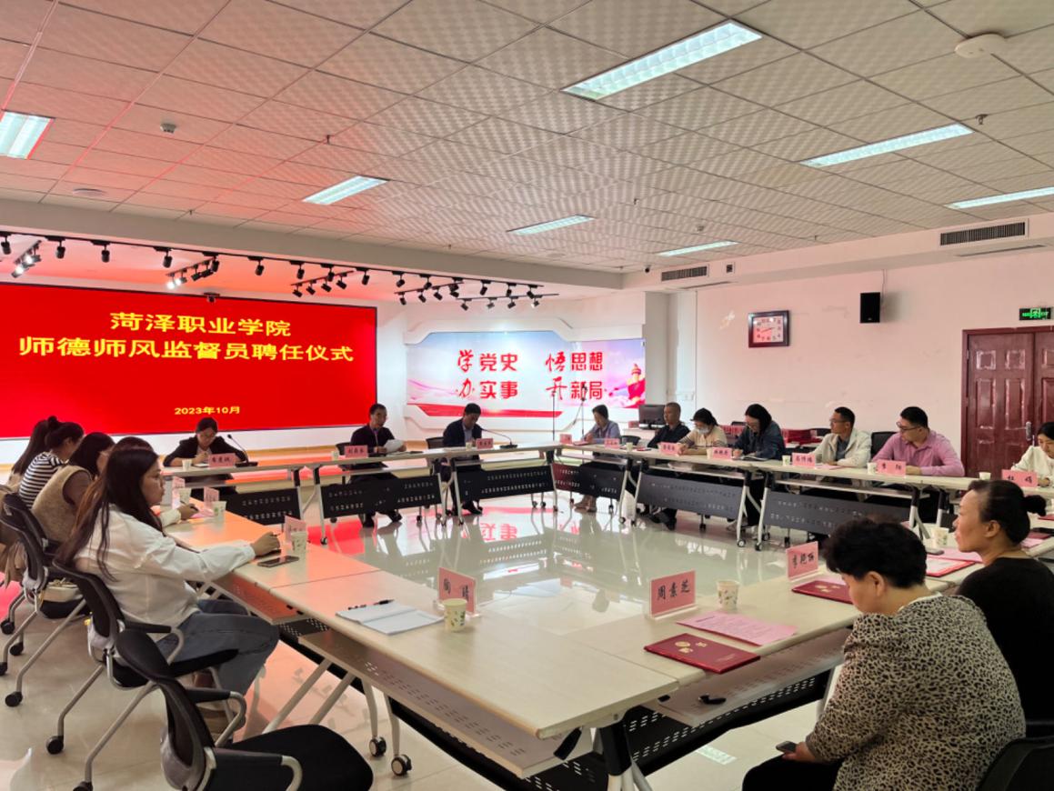 为深入学习贯彻习近平新时代中国特色社会主义思想,进一步加强和改进学校师德师风建设,积极构建学校、教师、学生、家长多方参与的清廉从教监督体系,2023年10月24日,永利yl23411官网纪委举行师德师风监督员聘任仪式。永利yl23411官网纪委副书记周生杰主持聘任仪式。永利yl23411官网党委委员、纪委书记、监察专员刘存长,纪检监察室主任席慧珉,各系部(院)党总支纪检委员和纪检监察室全体成员参加仪式。