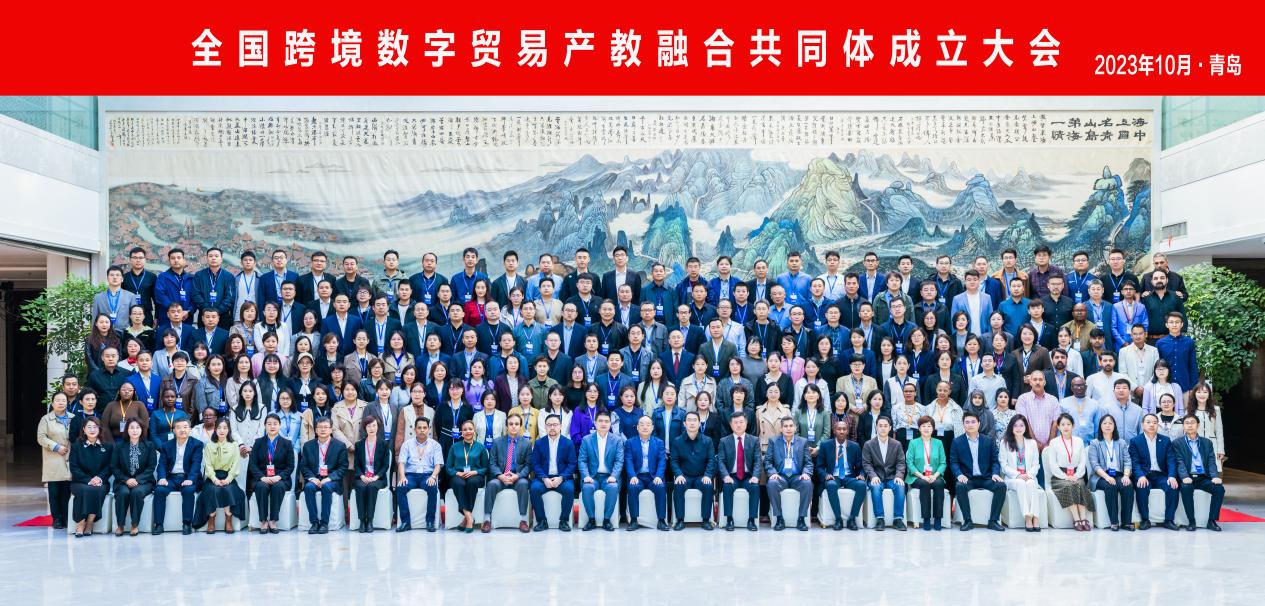 10月27日上午,全国跨境数字贸易产教融合共同体(以下简称“共同体”)成立大会在青岛顺利召开。该共同体首批成员单位包括高等院校、行业协会、企业等340家,覆盖25个省级行政区。山东省商务厅副厅长、一级巡视员张型成、全国电子商务职业教育教学指导委员会常务副主任陆春阳、北京外国语大学副校长丁浩、阿里巴巴国际站北方大区总经理刘宇、山东外贸职业学院院长刁建东,来自约旦、巴基斯坦、卢旺达、尼泊尔、莱索托的23名官员,以及各成员单位代表共230余人参加现场活动。山东省教育厅职教处副处长陈志浩通过视频致辞。