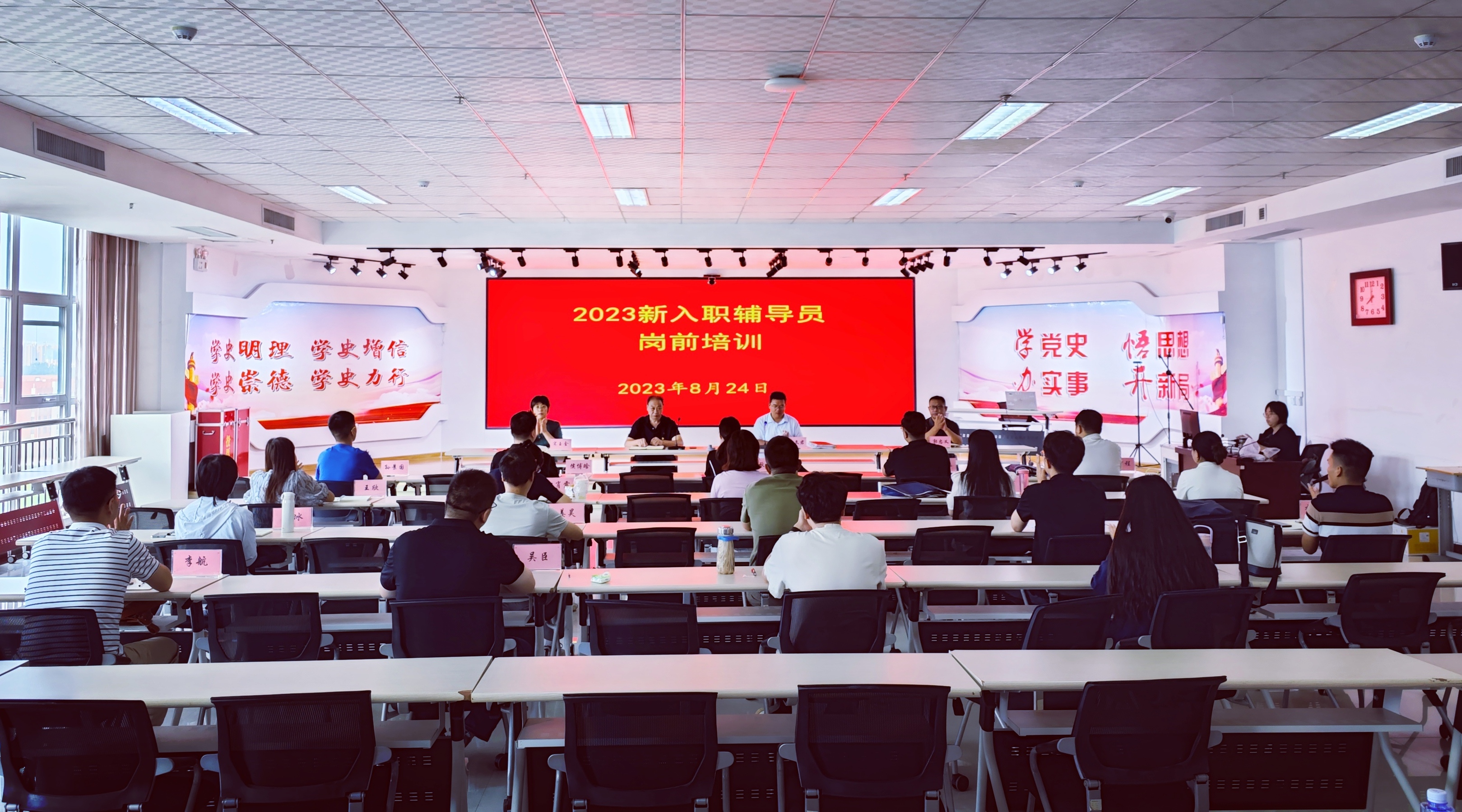 为深入学习贯彻习近平新时代中国特色社会主义思想和党的二十大精神,帮助新入职辅导员掌握基本业务知识,8月24日-8月25日,永利官网在创新创业楼903会议室举办2023年新入职辅导员岗前培训,学校党委委员、副院长王朝景同志、学工部负责人及2023年新入职辅导员参加了培训。