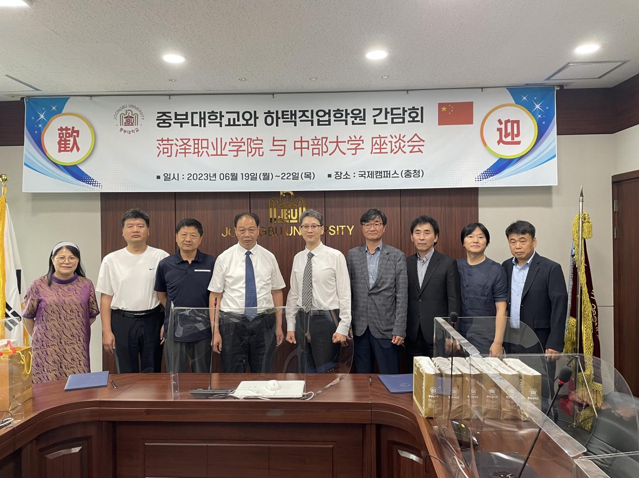 在访问协成大学期间,校长徐明寿、对外交流处处长金东允、对外交流处副处长李勇勋等对王朝景一行的到来表示欢迎。在随后的座谈会上,双方就职业高校走国际化发展道路的机遇与挑战进行了深入的讨论交流,并就留学生语言和技能教学、教师学历提升等事宜交换意见。