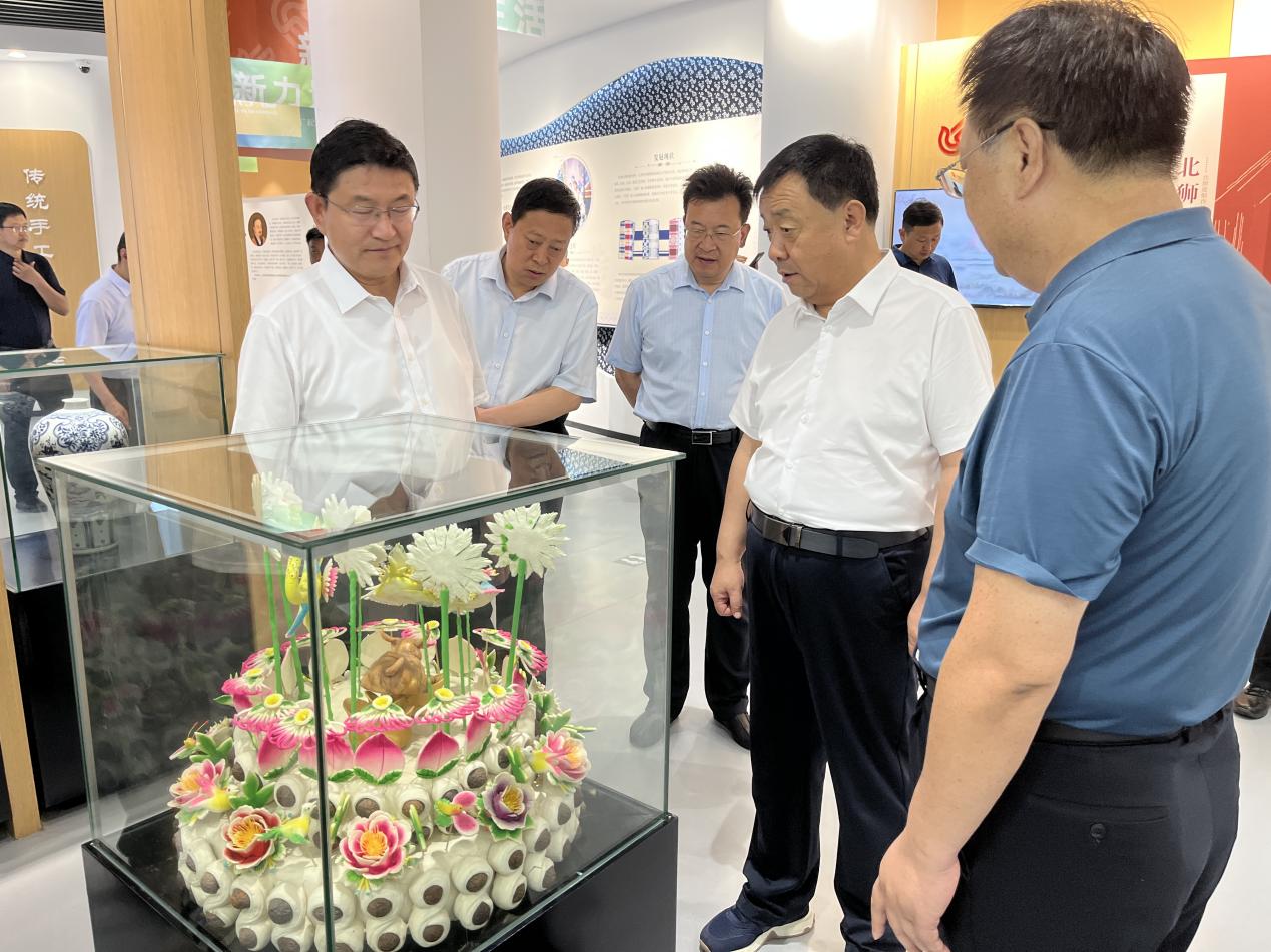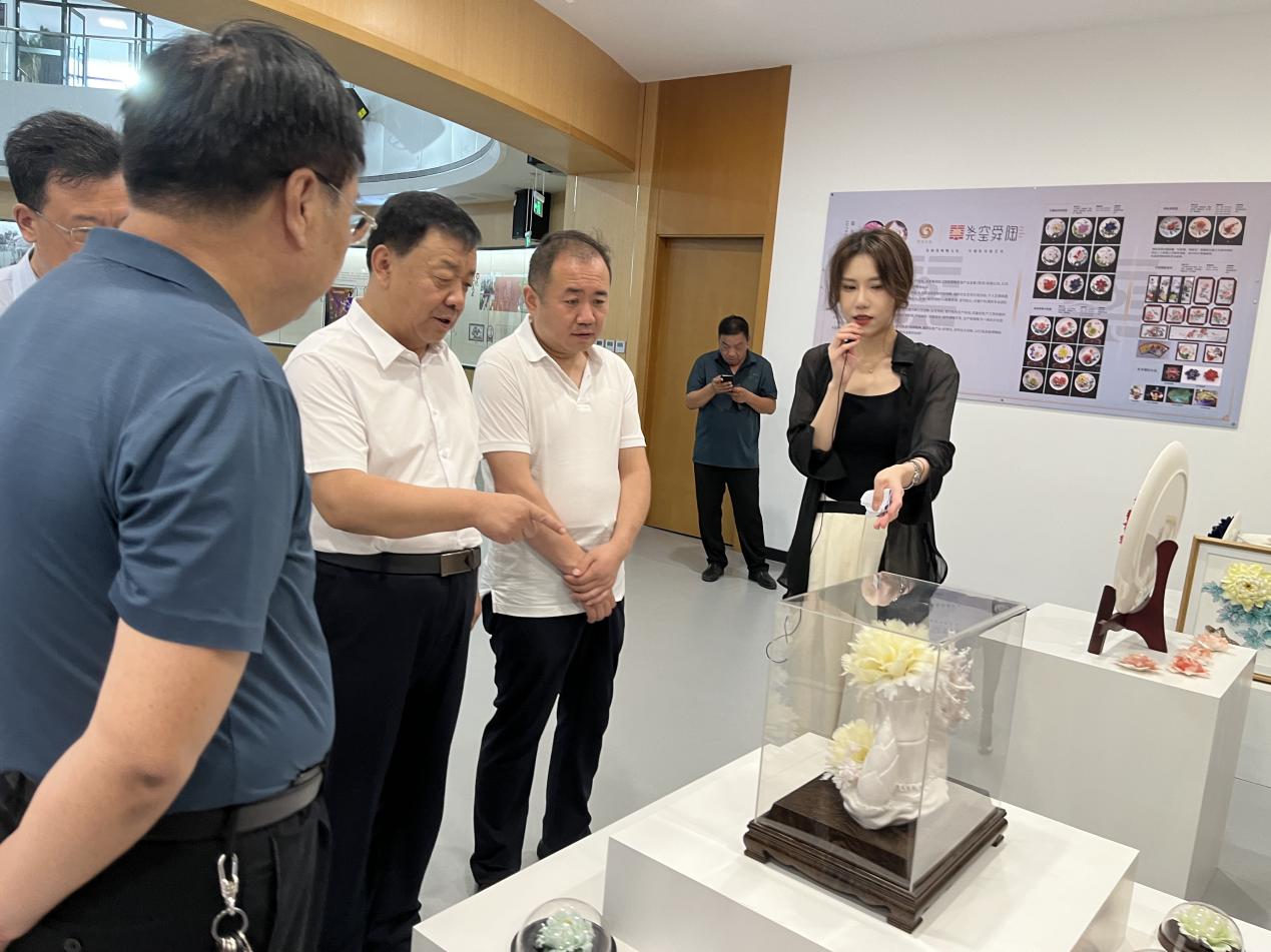 调研组一行先后来到了“山东手造(菏泽)展示体验中心”、“牡丹产品展销区”、“大师工作室”以及“悦读故宫牡丹文化创意展”参观,着重调研了“曹州面人”、“巨野工笔画”、“曹州刻瓷”、“曹州泥塑”等非遗技艺保护传承与文创产品开发展销情况,听取了讲解员对非遗项目的介绍,详细了解了我市牡丹文化挖掘利用与牡丹产业发展现状,观摩了永利官网科技园为社会培养、输送复合型人才的具体实践成果。