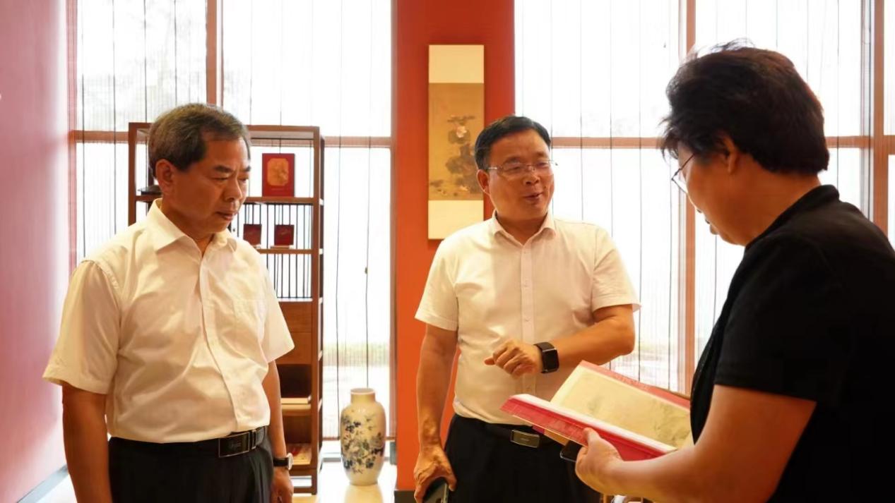 调研团最后来到了“悦读故宫”展区,参观“故宫牡丹文化创意展”,了解了产业园与故宫博物院出版社共同创新研发的故宫文创产品。一起品鉴了牡丹发展中心与故宫博物院出版社共同创新研发的菏泽首款故宫文创产品牡丹花蕊红茶,并在此召开座谈会。