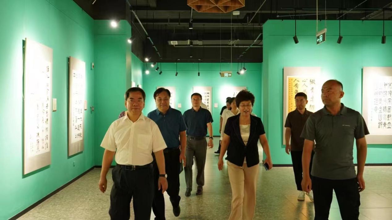 调研团首先来到了“万花湖美术馆”,美术馆目前正在展出的是“永远跟党走 奋进新征程——全市青年主题书法展”。本次展出以党的二十大报告内容为创作主线,汇集了全市青年书法工作者及部分名家作品76件。调研团在书法艺术作品前驻足观看,对展出作品表示赞赏。