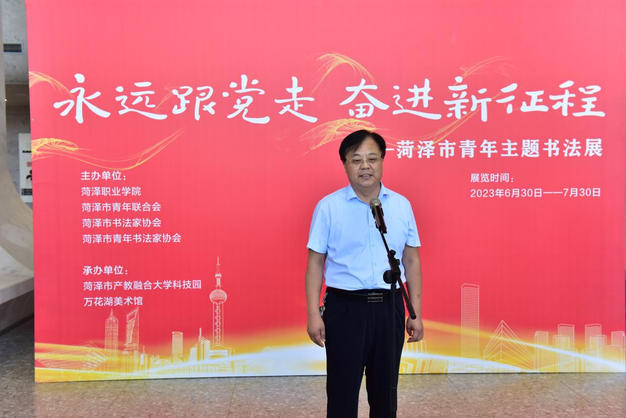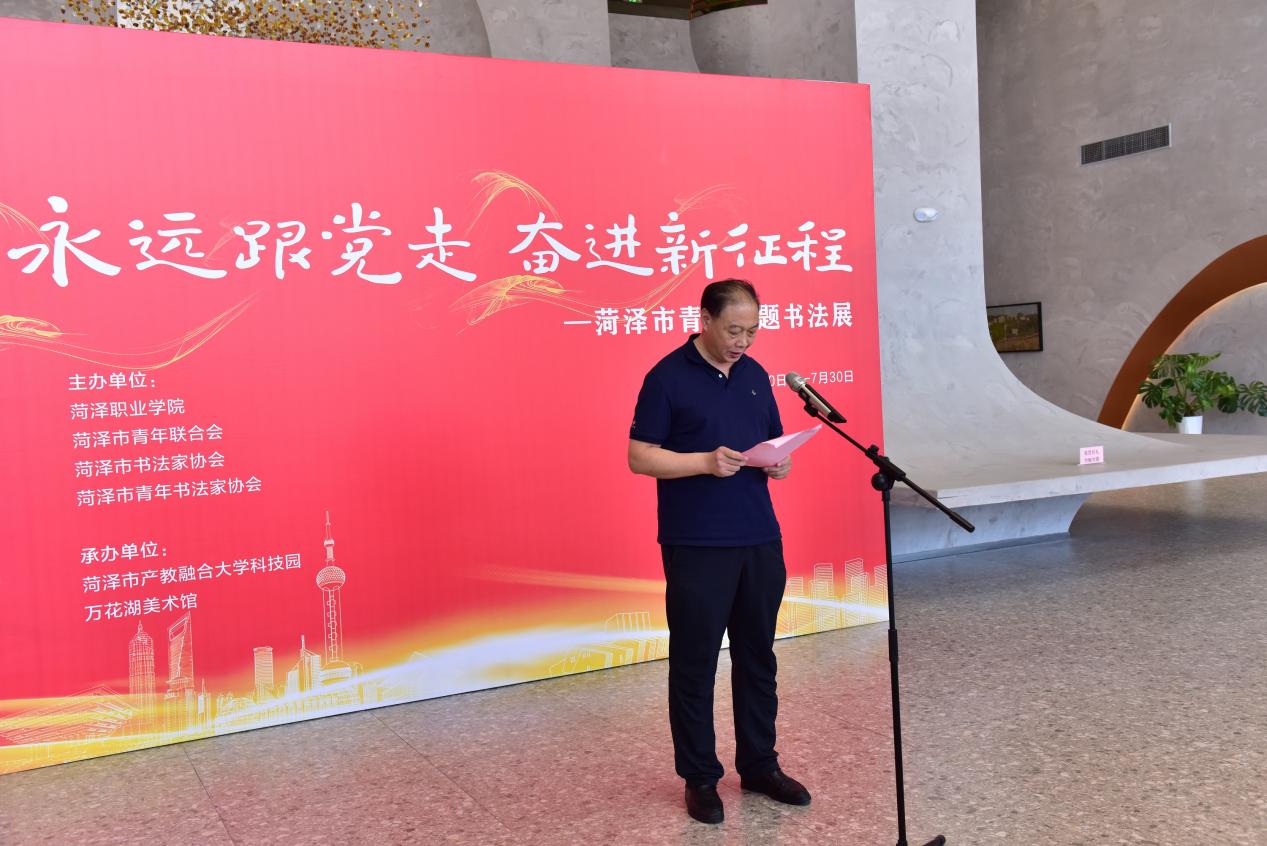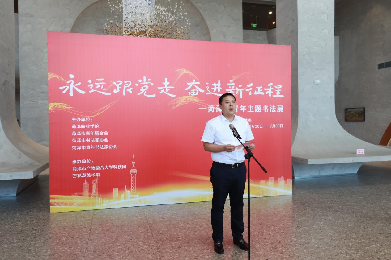 共青团菏泽市委书记、市青联主席林永敬说:“‘永远跟党走 奋进新征程——菏泽市青年主题书法展’,既是讴歌党带领人民奋进新征程的重要举措,也是团结引领全市广大青年书法工作者听党话、跟党走的具体实践。”