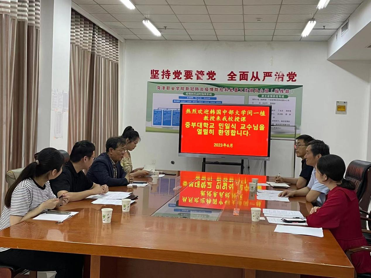 韩国中部大学闵一植教授于6月17日抵达永利yl23411官网,将为21级中韩国际班旅游管理专业学生开展线下授课。闵一植教授是韩国中部大学航空观光学部的主任教授,拥有丰富的教学经验和实践经验。为欢迎闵一植教授的到来,国际交流学院于6月18日在创业园举行欢迎仪式并召开座谈会,永利yl23411官网党委委员、副院长张国胜,永利yl23411官网教务处副处长郑瑞科、永利yl23411官网国际交流合作中心副主任王琳等出席欢迎仪式和座谈会。