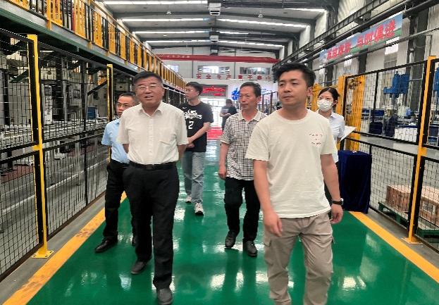 在公司董事长李广君的带领下,胡宪奎一行人参观了企业生产车间和研发车间。