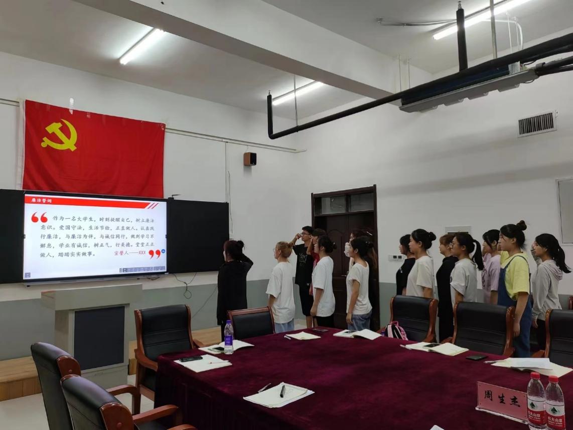 最后,全体学生代表进行了廉洁宣誓,并观看了廉政文化纪录片《廉鉴》。