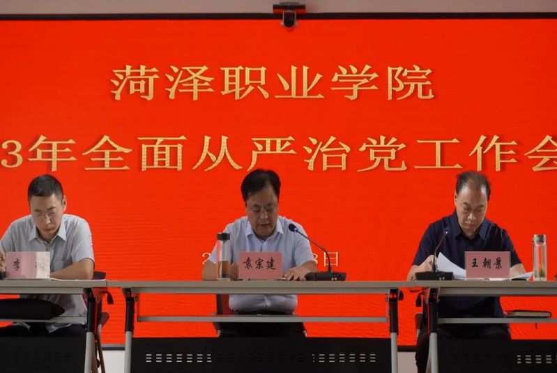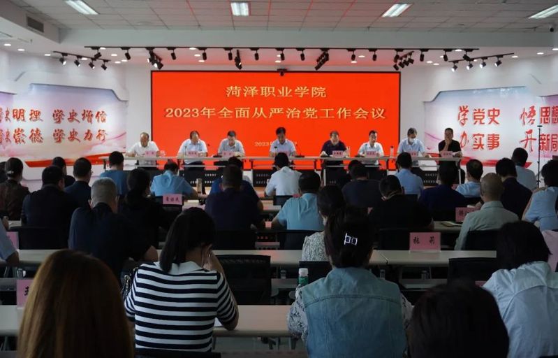 6月8日,永利yl23411官网召开2023年全面从严治党工作会议。会议全面深入贯彻党的二十大以及二十届二次全会、省纪委十二届二次全会和市纪委十四届二次全会精神,总结回顾学校2022年全面从严治党工作,部署安排2023年重点任务。党委副书记、院长袁宗建出席会议并讲话,党委委员、副院长王朝景主持会议,全体党委委员及科级以上干部参加会议。菏泽市纪委监委第五监督检查室副主任李壮到会指导。
