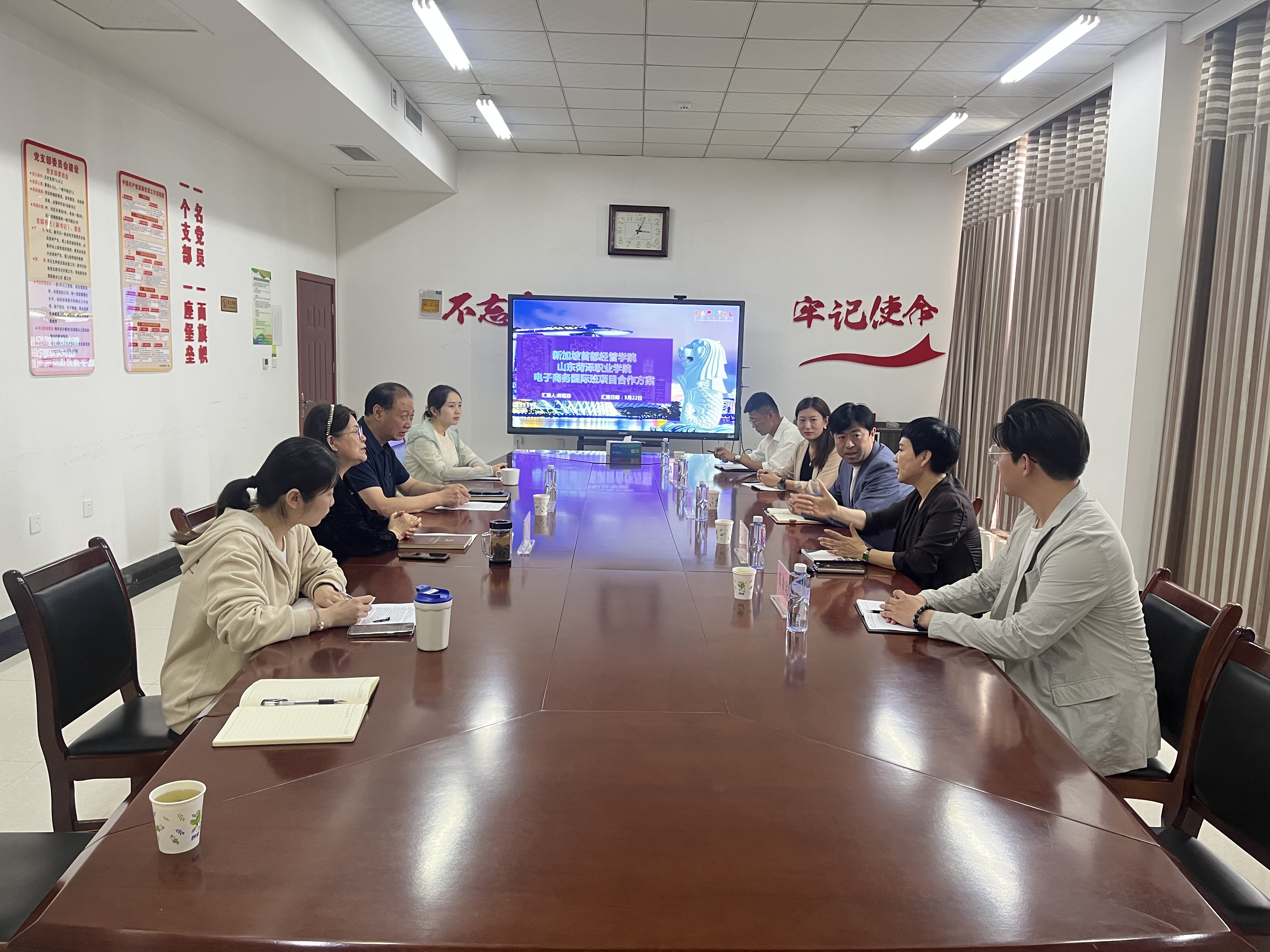 会中,房延菲就开展合作办学项目的必要性和新加坡首都学院经管学院办学情况、师资及合作企业等情况展开具体描述介绍。