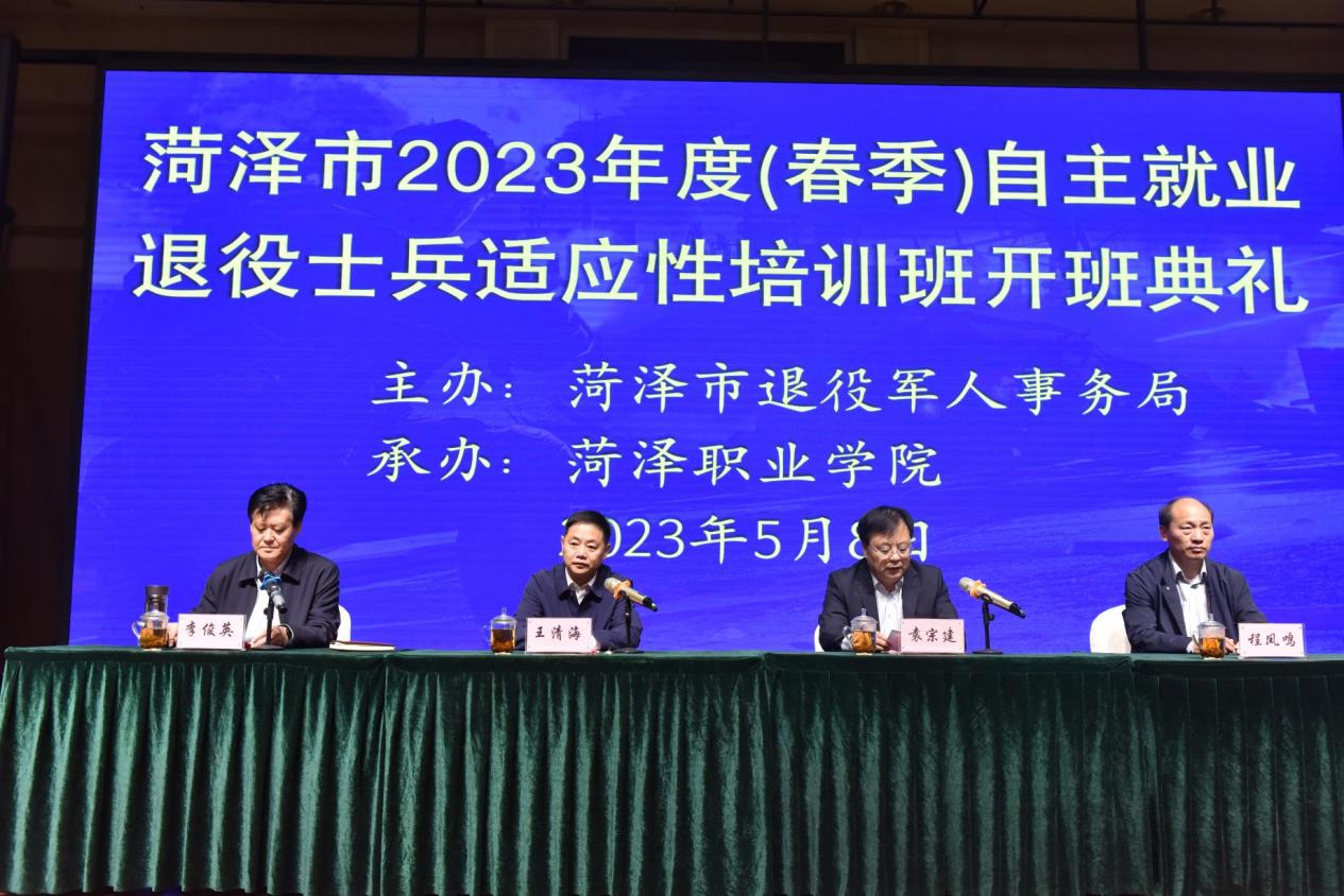 5月8日,2023年度(春季)菏泽市自主就业退役士兵适应性培训班开班典礼如期举行。学院党委副书记、院长袁宗建,党委委员、副院长程凤鸣,菏泽市退役军人事务局党组书记、局长、一级调研员王清海,党组副书记、副局长、一级调研员李俊英出席开班典礼。相关单位负责同志参加了活动。