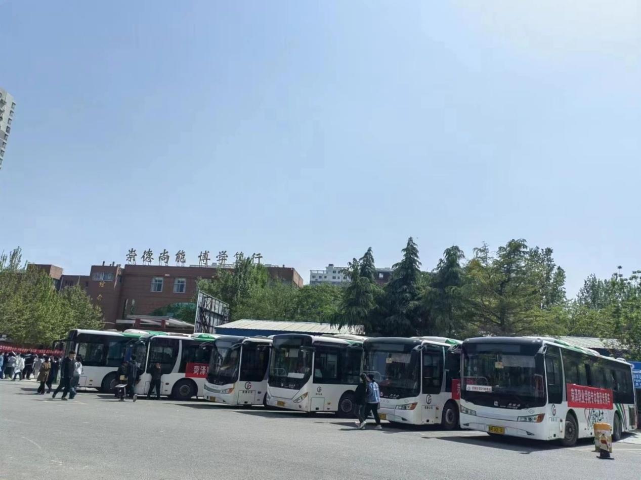 考试当天,晨光熹微,学院教师与学生志愿者早早便来到了候车地点。出发前,老师们核对信息、清点人数,提醒考生们再次检查个人证件、考试用品,叮嘱大家放松心态,保持良好的考试状态,自信从容面对考试。随后,六辆大巴车满载着197位学生的希望顺利抵达考点。