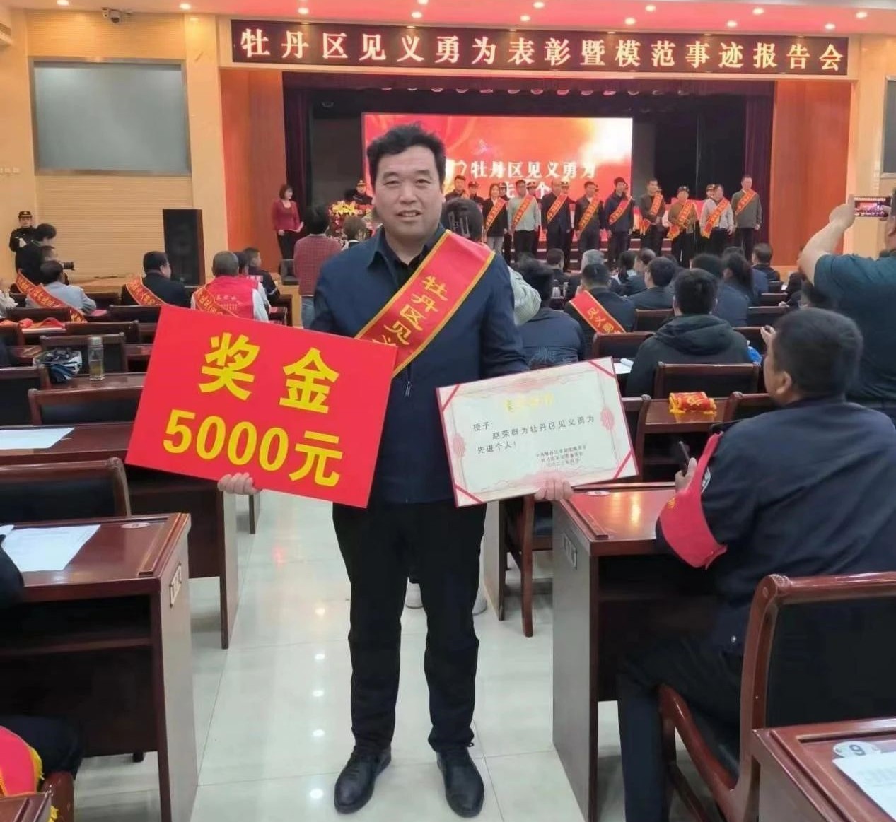 在4月25日召开的牡丹区见义勇为表彰暨模范事迹报告会上,赵荣群老师荣获牡丹区见义勇为先进个人和5000元奖金;我院荣获支持重视宣传见义勇为工作先进单位。