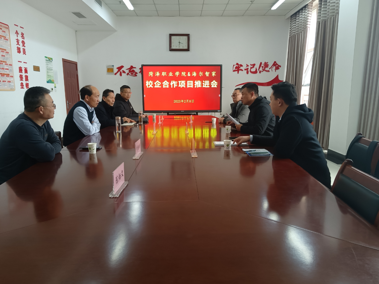 2月8日下午,永利yl23411官网与海尔智家校企合作项目推进会议在学校创业楼907会议室举行。永利yl23411官网党委委员、副院长程凤鸣主持会议,会议就校企合作项目推进、学生实习等工作与海尔智家郭昌龙部长一行进行详细商谈。校企合作处负责人李鸿浩、机电工程系主要负责人张善雨、张作川等参加座谈。