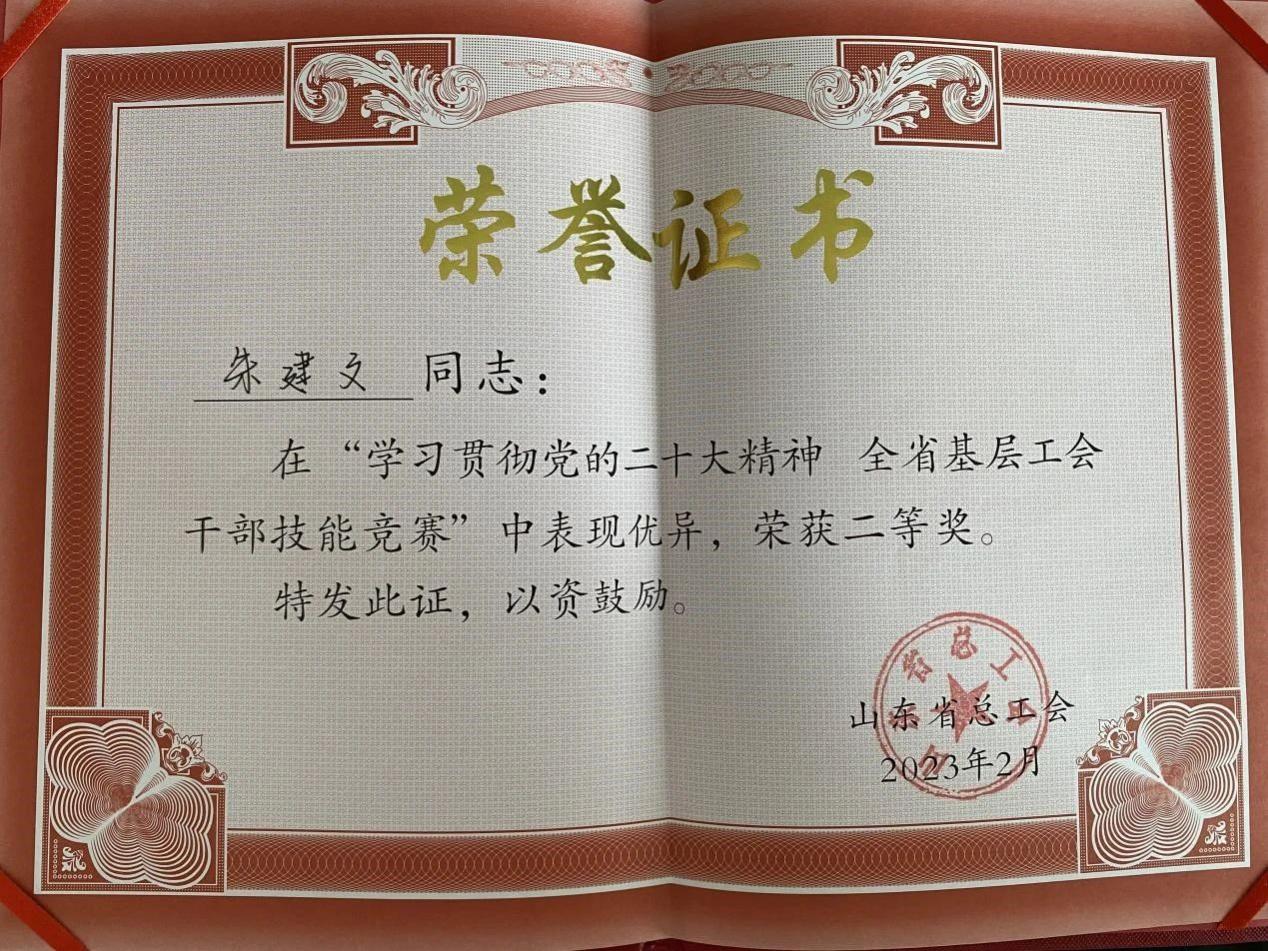 2月22日至23日,“学习贯彻党的二十大精神 全省基层工会干部技能竞赛”复(决)赛在济南成功举办,由院工会选派的旅游管理系教师朱建文代表菏泽市总工会参赛,经过4场复赛、1场附加赛和决赛紧张激烈地角逐,最终获得全省二等奖。