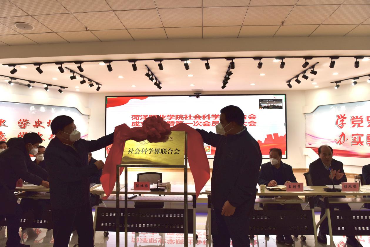大会在庄严的国歌声中开幕;工作人员宣读了《永利yl23411官网关于成立高校社科联的决定》和《关于同意永利yl23411官网社会科学界联合会为菏泽市社会科学界联合会团体会员的批复》;市社科联主席王志华和学院党委书记陈北国共同为“永利yl23411官网社会科学界联合会”揭牌。