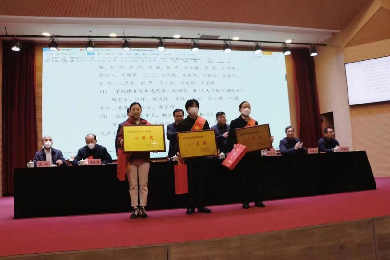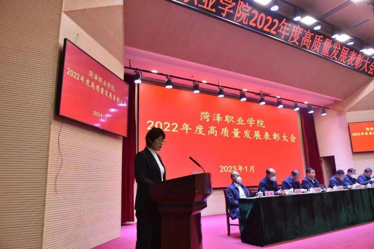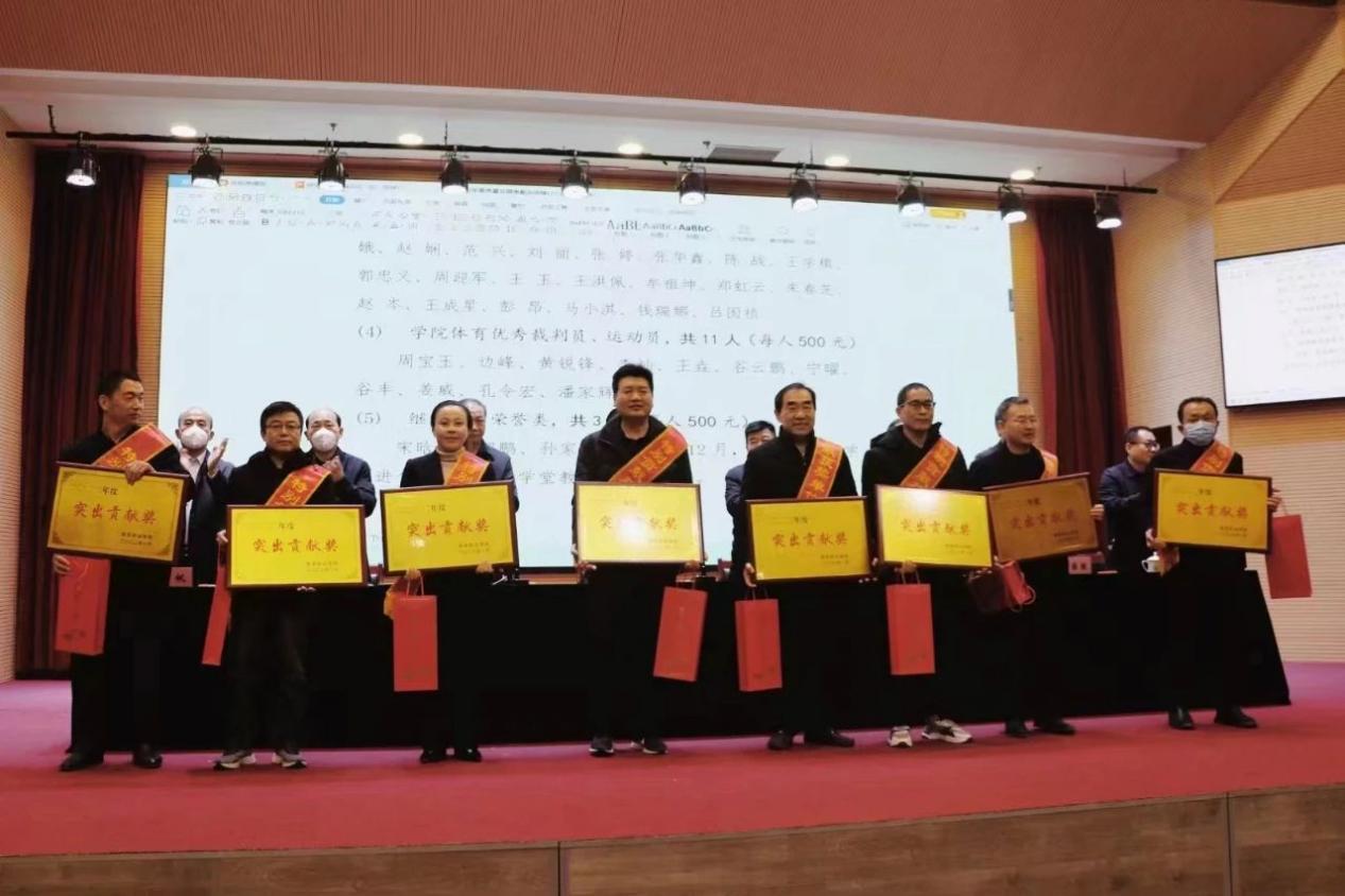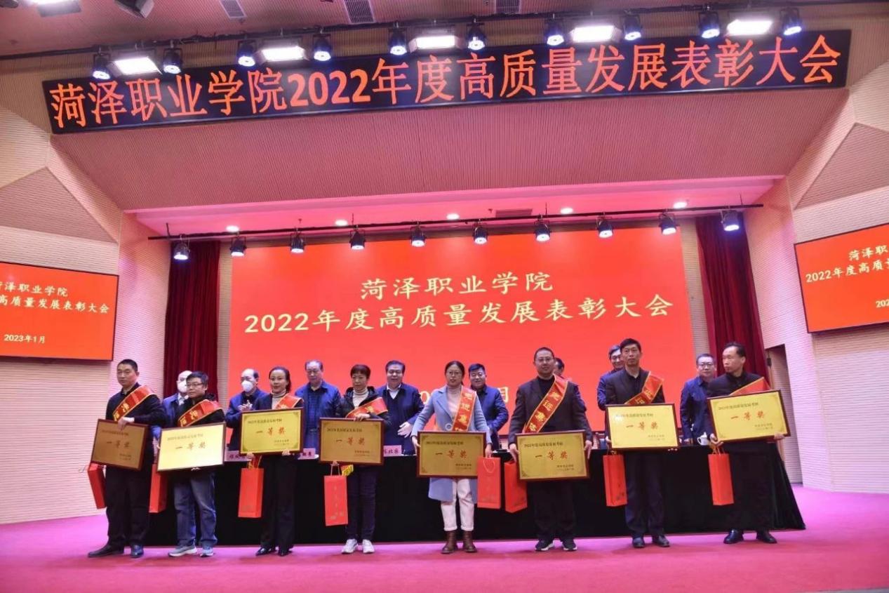会上,党委委员、副院长王朝景宣读了《永利yl23411官网2022年高质量发展表彰决定》,陈北国等与会领导分别为学院高质量发展和教育教学方面涌现出来的先进集体和个人颁奖。省级教学成果获奖教师代表宋玉金和突出贡献获奖部门代表殷付仁做获奖发言。