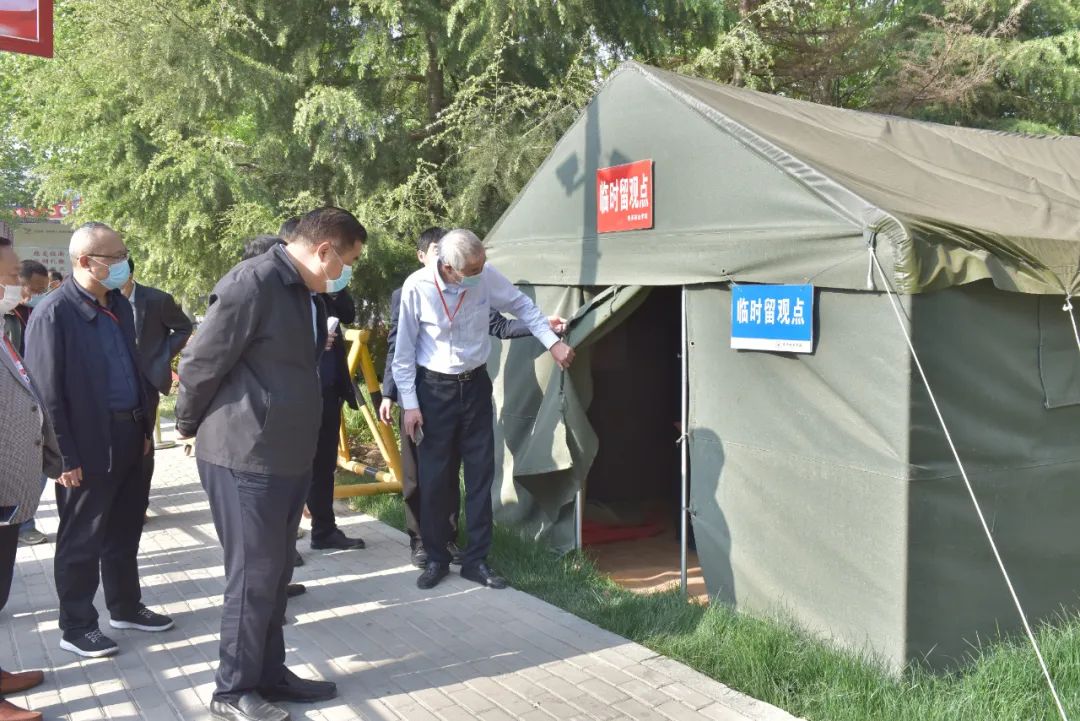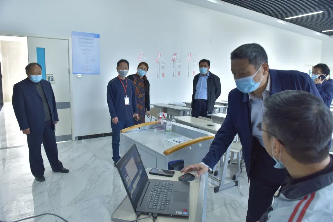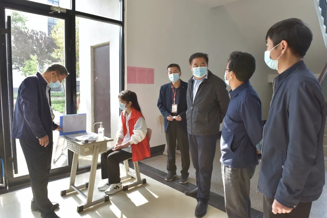我院党委书记陈北国,副院长陈俊启,副院长胡宪奎,纪委书记刘存长和相关处室、系部、二级学院的主要负责人,认真检查临时留观点、教室、楼门自动测温仪、学校大门等教学区。