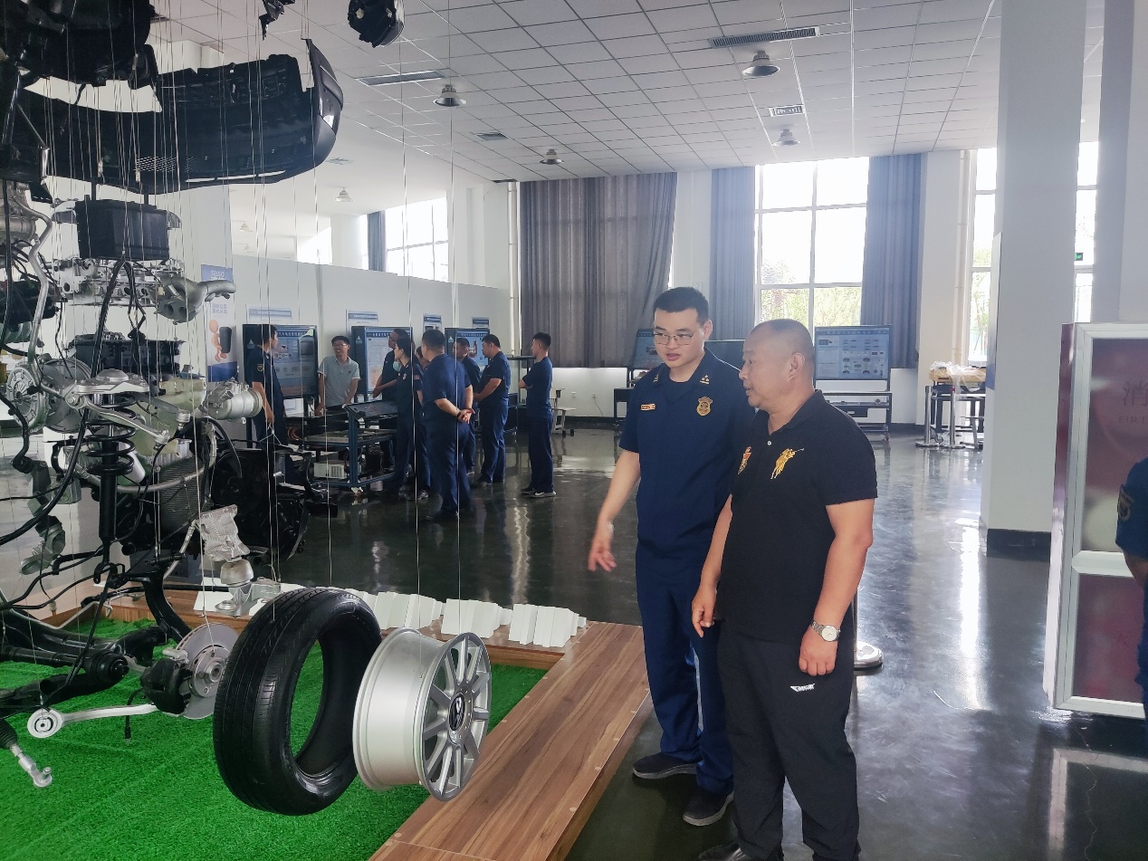 纪元对菏泽市消防救援支队的到访表示热烈欢迎,张哲皓一行主要对交通工程系实训车间进行了参观,王洪佩通过课件与实物相结合的方式为支队同志介绍新能源汽车的发展概况和易引发火灾安全隐患的原因及部位,支队同志与纪元、王洪佩进行了深入交流。