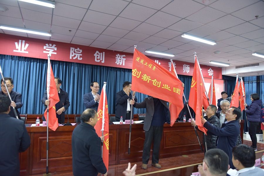菏泽市科技局局长杜岩、菏泽市商务局调研员文俊、永利yl23411官网党委书记陈北国出席会议,向首批创业导师颁发聘书,并对创业团队颁发团旗。党政机关、行业专家、师生代表共计200余人出席誓师大会。学院党委委员胡宪奎向来宾介绍了有关我院创新创业配套文件,誓师大会由学院党委副书记周福举主持。