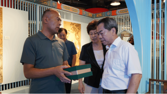 调研团最后来到了“悦读故宫”展区,参观“故宫牡丹文化创意展”,了解了产业园与故宫博物院出版社共同创新研发的故宫文创产品。一起品鉴了牡丹发展中心与故宫博物院出版社共同创新研发的菏泽首款故宫文创产品牡丹花蕊红茶,并在此召开座谈会。