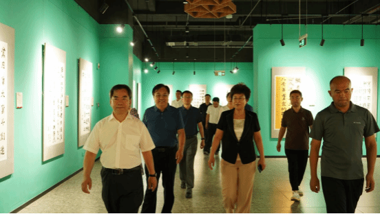 调研团首先来到了“万花湖美术馆”,美术馆目前正在展出的是“永远跟党走 奋进新征程——全市青年主题书法展”。本次展出以党的二十大报告内容为创作主线,汇集了全市青年书法工作者及部分名家作品76件。调研团在书法艺术作品前驻足观看,对展出作品表示赞赏。