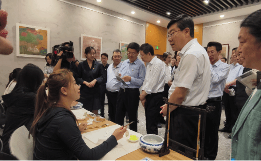 检查组一行先后参观了菏泽非遗展览馆、非遗文创产品展销区、工笔牡丹画非遗传承人徐凤秋作品陈列区、菏泽市非遗技艺传承人大师工作室。一件件、一组组非遗项目的实物展品和图片资料,多维度、多角度展示新时代我市非物质文化遗产保护和传承工作中的创新成果,营造激发非遗活力、创造美好生活的浓厚氛围。