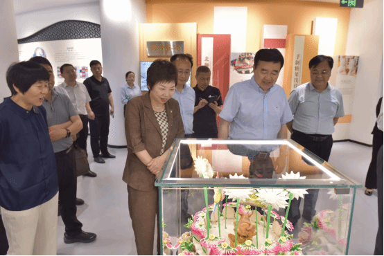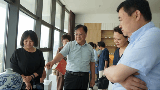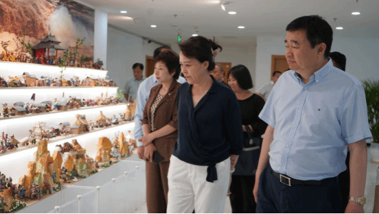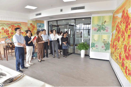 考察团先后参观了四季花厅、菏泽非遗传承馆、明代曹州古城作品展、牡丹瓷展示区、牡丹产品展销中心、《黄河谣》大型非遗作品展以及非遗技艺传承馆——“大师工作室”。通过一件件、一组组非遗项目的实物展品,详细了解了非遗文化保护工作现状,并认真听取了永利官网结合非遗文化进行产教融合建设的具体情况。