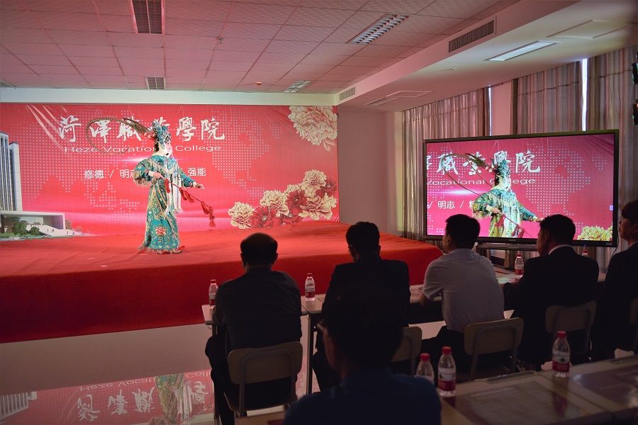 一行人在我院会议室召开座谈会,座谈会由外事办主任马敬青主持。会议上展播了菏泽市宣传片。商务局副局长孙雷、学院党委副书记周福举、文化促进会副会长樊庆堂分别做主旨发言。