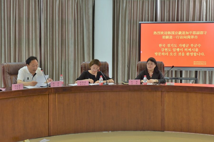 5月15日,韩国京畿道加平郡副郡守姜顯道先生一行9人在菏泽市文化促进会会长韩广洁、副会长马春田、樊庆堂、李运斋,外事办主任马敬青等陪同下来我院参观。学院党委副书记周福举出席接待活动,宣传统战部、院团委、国际交流处有关负责同志陪同参与。