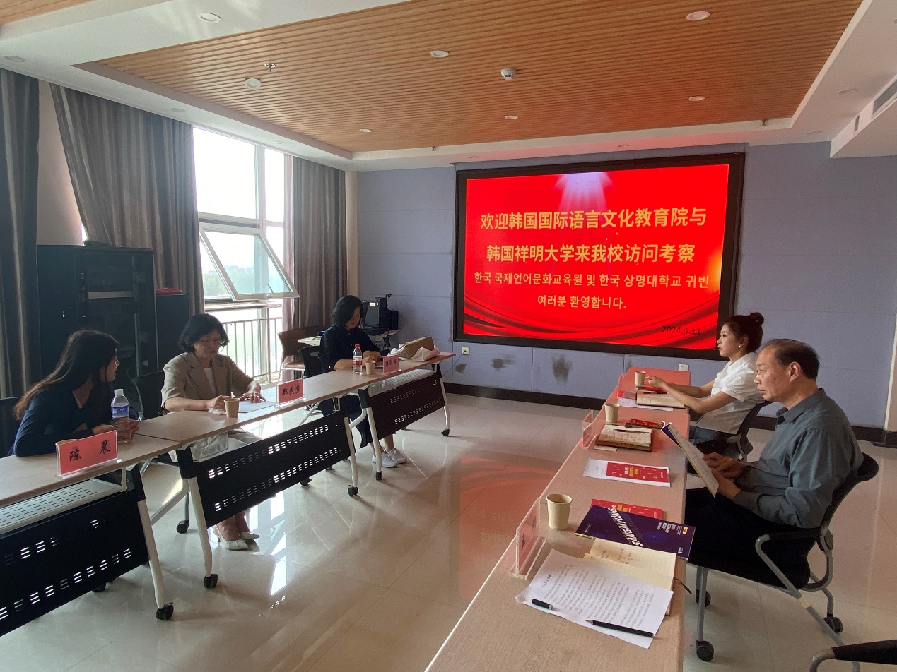 4月11日,韩国祥明大学语言教育院部长郑民熏、韩国祥明大学招生组负责人韩耶丽来永利官网交流访问。永利官网党委委员、副院长王朝景、国际交流合作中心副主任王琳参加座谈。