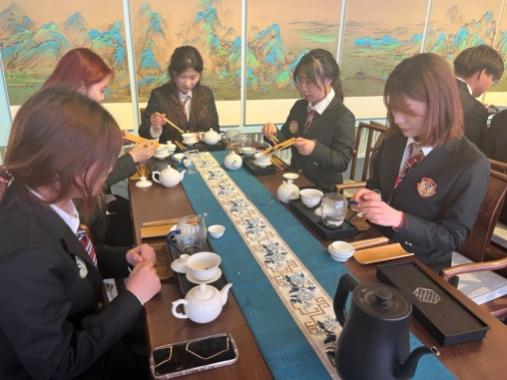 学生们在古筝的悠扬旋律中逐渐沉浸,置身于充满古韵的茶室,心灵仿佛被引领至遥远的古老时代。在这里,他们不仅聆听着老师对茶文化的深度剖析,更在泡茶、品茶的细致过程中,深切感受到中华文化的博大精深。茶,作为中华文化的核心元素,其背后所承载的哲学思想和审美观念,为学生们敞开了一扇通向东方智慧的大门。