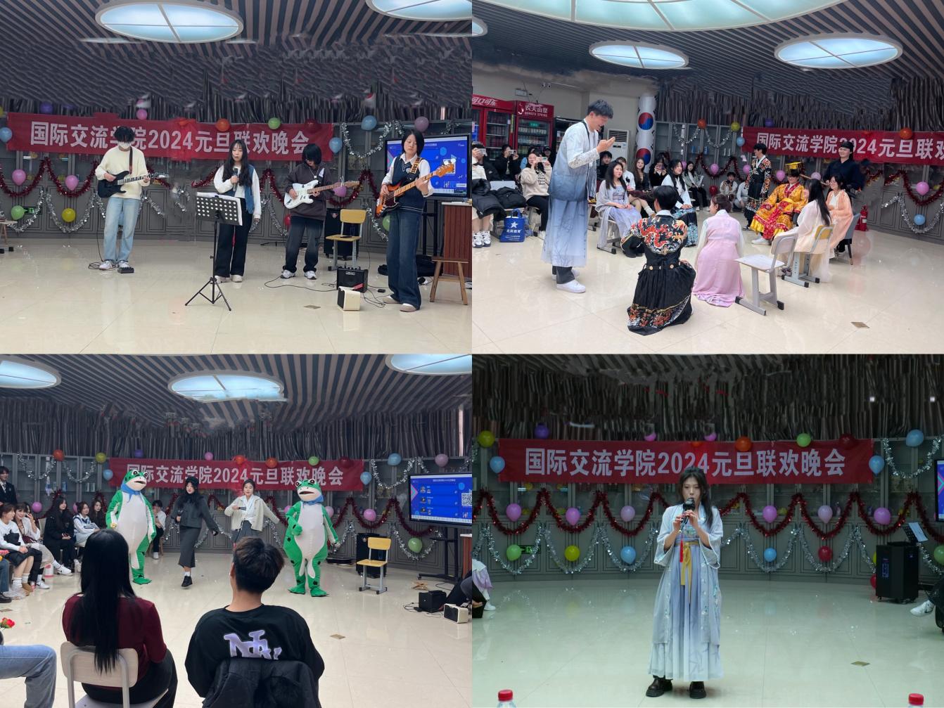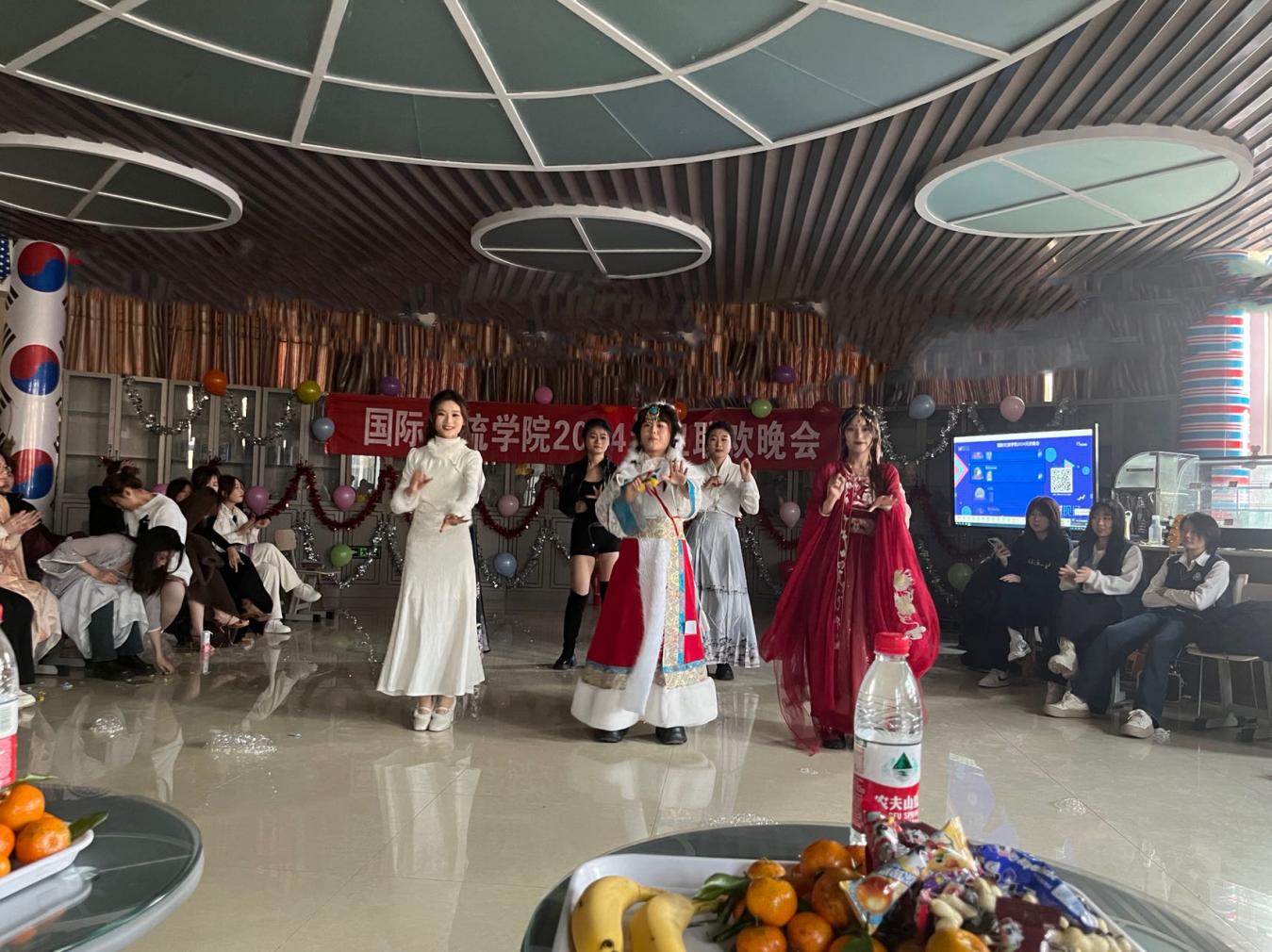 为庆祝元旦佳节,进一步推进国际交流学院文艺活动的发展,丰富校园文化生活,活跃学习氛围,给同学们一个真正展示自我风采和勇气的舞台,培养学生的艺术表演及欣赏能力,国际交流学院于12月28日在6号教学楼生活体验馆举办“两旦一新”元旦联欢晚会。国际交流学院21、22、23级全体师生和韩国中部大学李康旭教授参加活动。