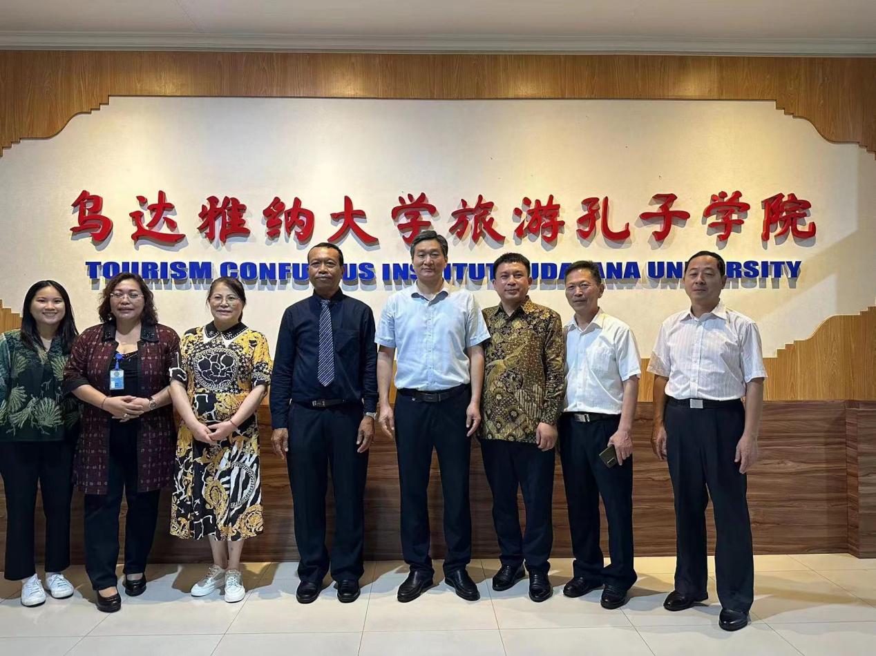 此后,张国胜一行前往印尼乌达雅纳大学并拜访旅游孔子学院印尼方负责人I Made Sendra,充分了解到乌达雅纳大学与中国高校现有的合作模式,并详细介绍了永利官网“中文+职业技能”人才培养模式、旅游应用型人才实训基地建设情况以及成功举办汉语桥的经验。两校在建设发展、师生交流、学术交流等多个方面达成共识,尤其就派遣永利官网教师到旅游孔子学院为当地医院、酒店、旅行社等部门开展各类中文培训达成了初步合作意向,共同推动两校在旅游研究、文化交流方面的务实合作。