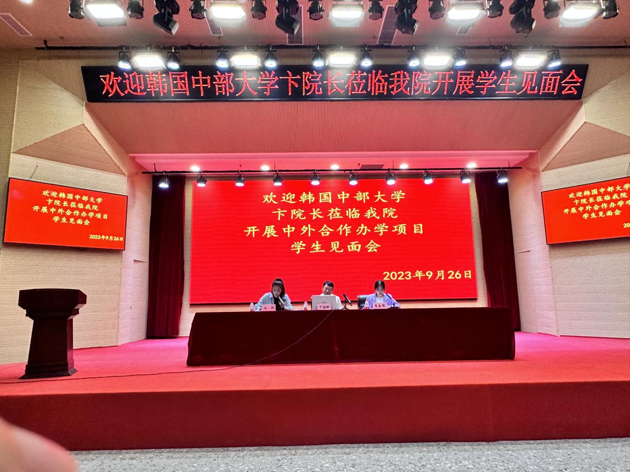 9月26日,韩国中部大学国际交流院院长卞禎敏来我院访问交流并受邀在大学科技园为国际交流学院学生开展学生见面会。会上,卞院长向同学们分析全球行业发展趋势及就业形势,并与同学们进行问答互动,进一步对赴韩留学深造等同学们关心的问题进行了耐心细致的解答。