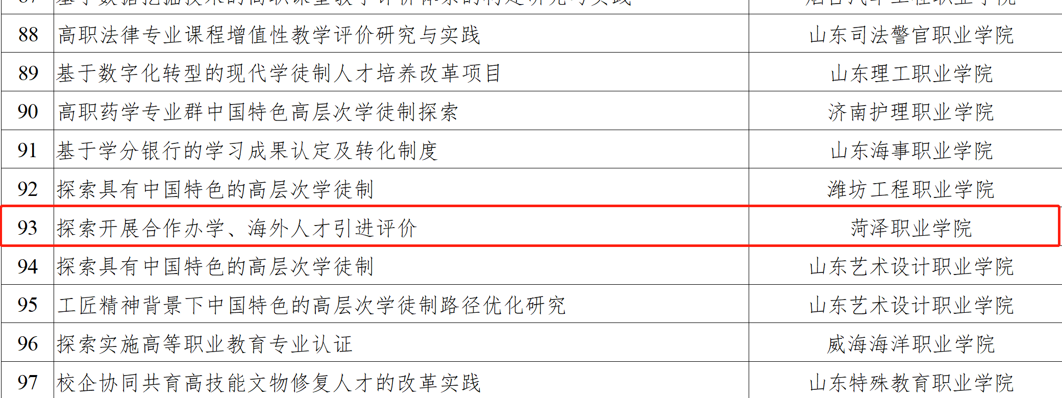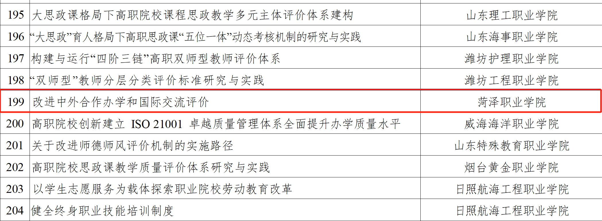 近日,山东省教育厅发布了《山东省教育厅关于公布教育评价改革项目库项目名单的通知》(鲁教改涵[2023]2号),确定325个项目纳入山东省教育评价改革项目库,其中职业教育类169项。永利官网国际交流学院朱豫、冯珂负责的《改进中外合作办学和国际交流评价》及朱豫、张奥负责的《探索开展合作办学、海外人才引进评价》两个项目入选立项名单。