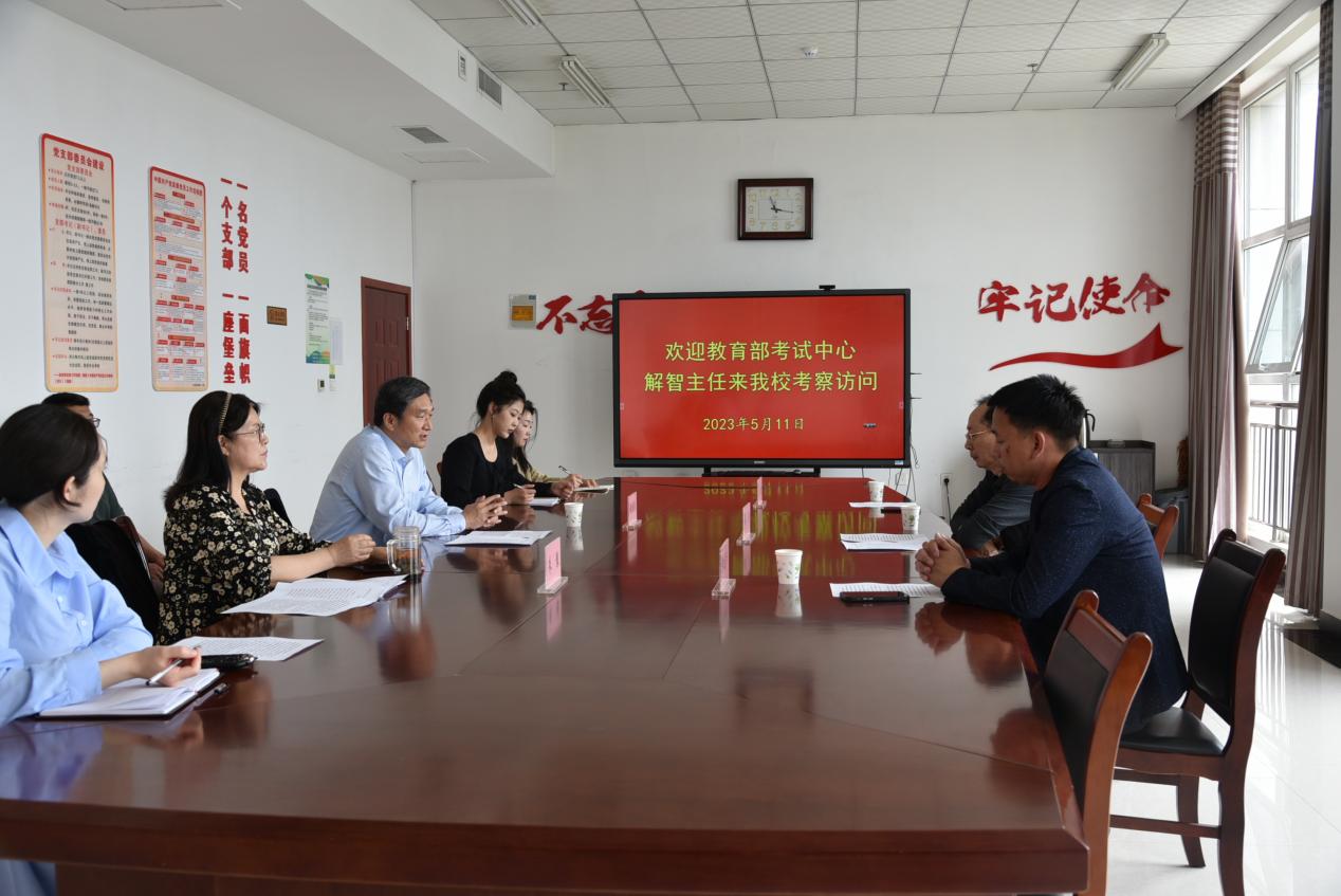 5月11日,国家教育部海外考试中心解智主任莅临永利官网考察、指导海外考点建设工作,永利yl23411官网党委委员、副院长张国胜和永利yl23411官网国际交流学院院长朱豫陪同参观了大学科技园、国际交流学院,实地察看了永利官网考场情况,并在创新创业园召开座谈会。