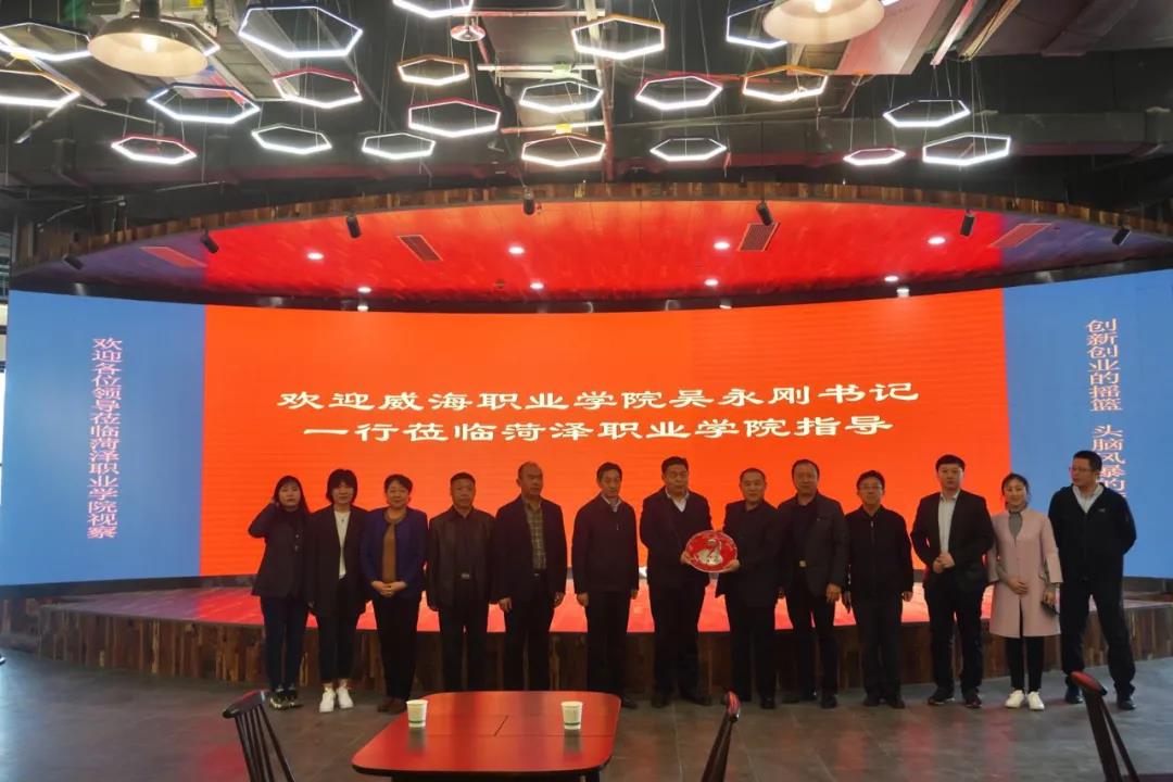 2021年3月15日上午,山东威海职业学院党委书记吴永刚,院长李耀华等一行13人来到永利yl23411官网参观考察学习。永利yl23411官网党委书记陈北国,院长高会峰,副院长陈俊启等人陪同。
